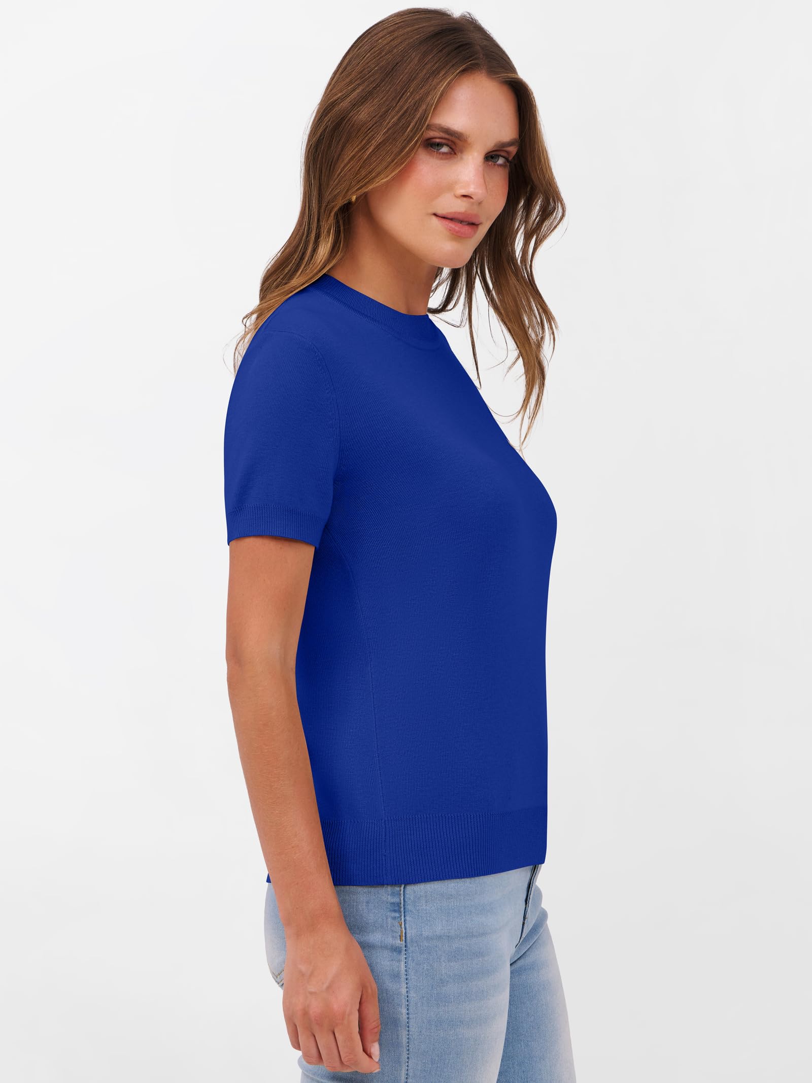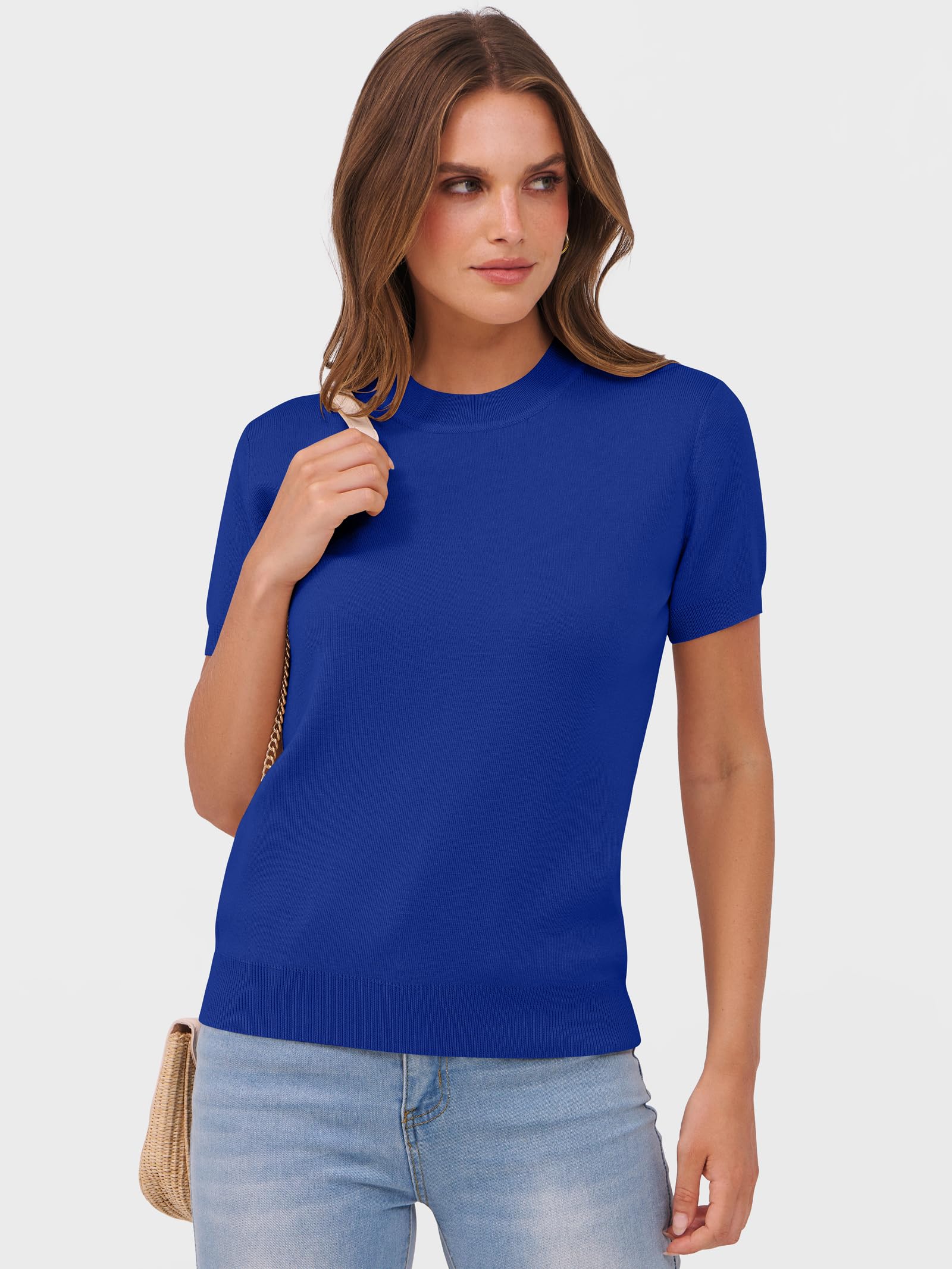 Features - Women's summer sweaters, crew neck, short sleeve, knitted, wool blend. This women's sweater tops perfect for daily wear, work, office, business casual.
