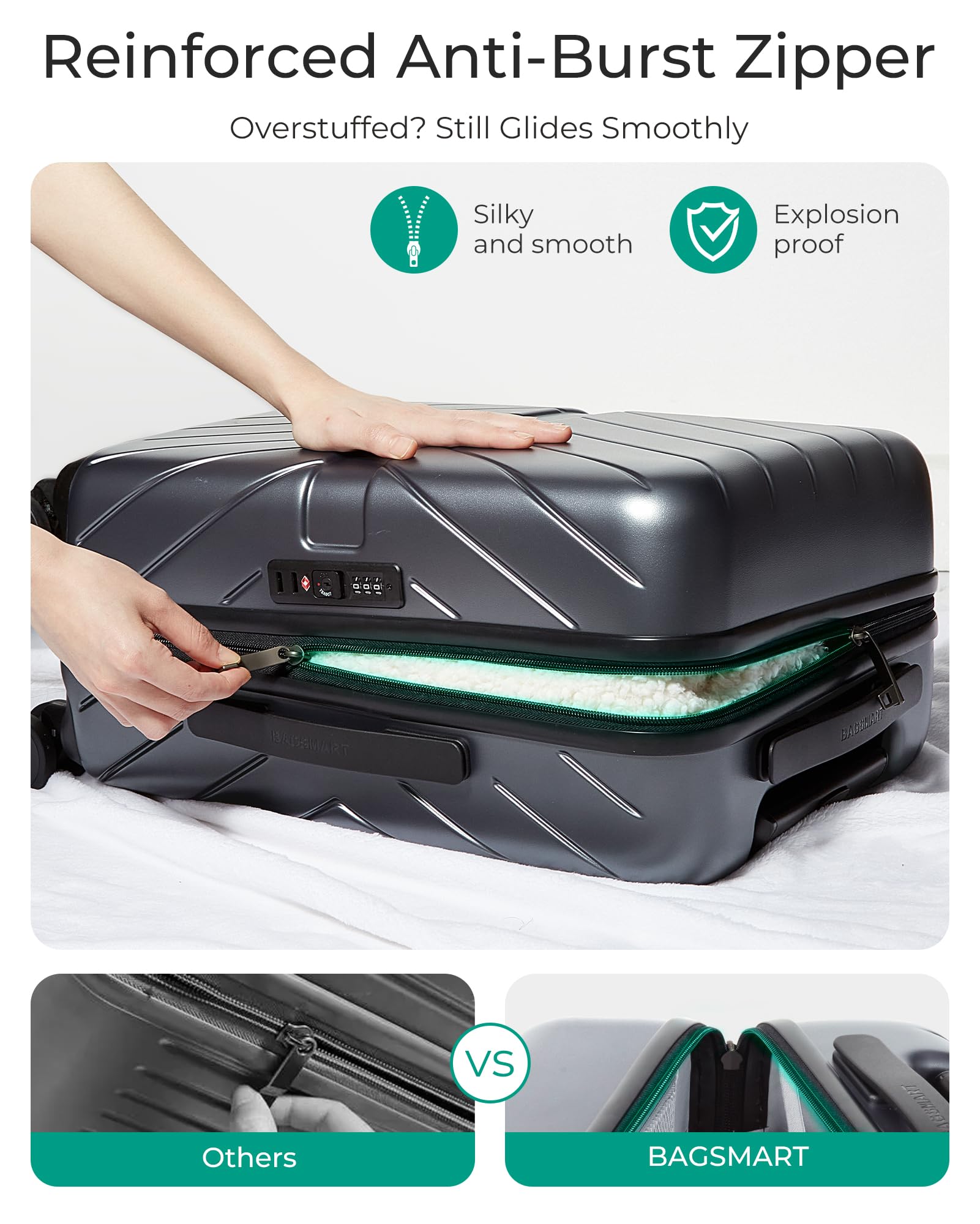Premium Service And Warranty: BAGSMART will back each piece of tsa approved carry on luggage with a 5-year manufacturer's warranty. Before shipment, hard side luggage with spinner wheels undergoes thousands of rigorous tests to ensure that our carry on suitcase meets strict standards and can withstand any journey. If there is any quality problem, please feel free to contact us. Professional and patient customer service will reply to your satisfaction in time.
