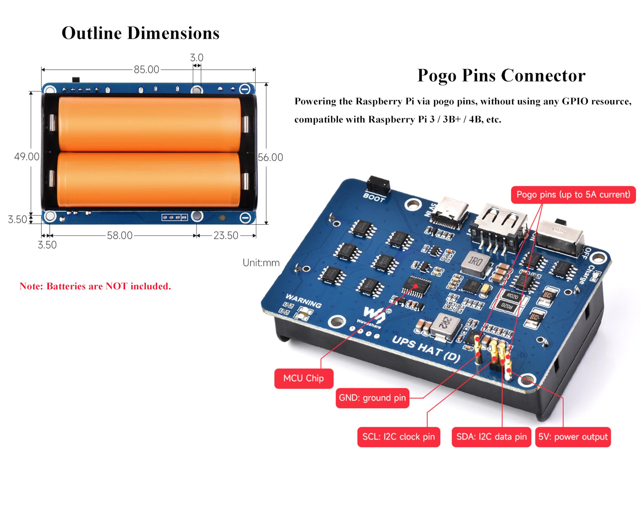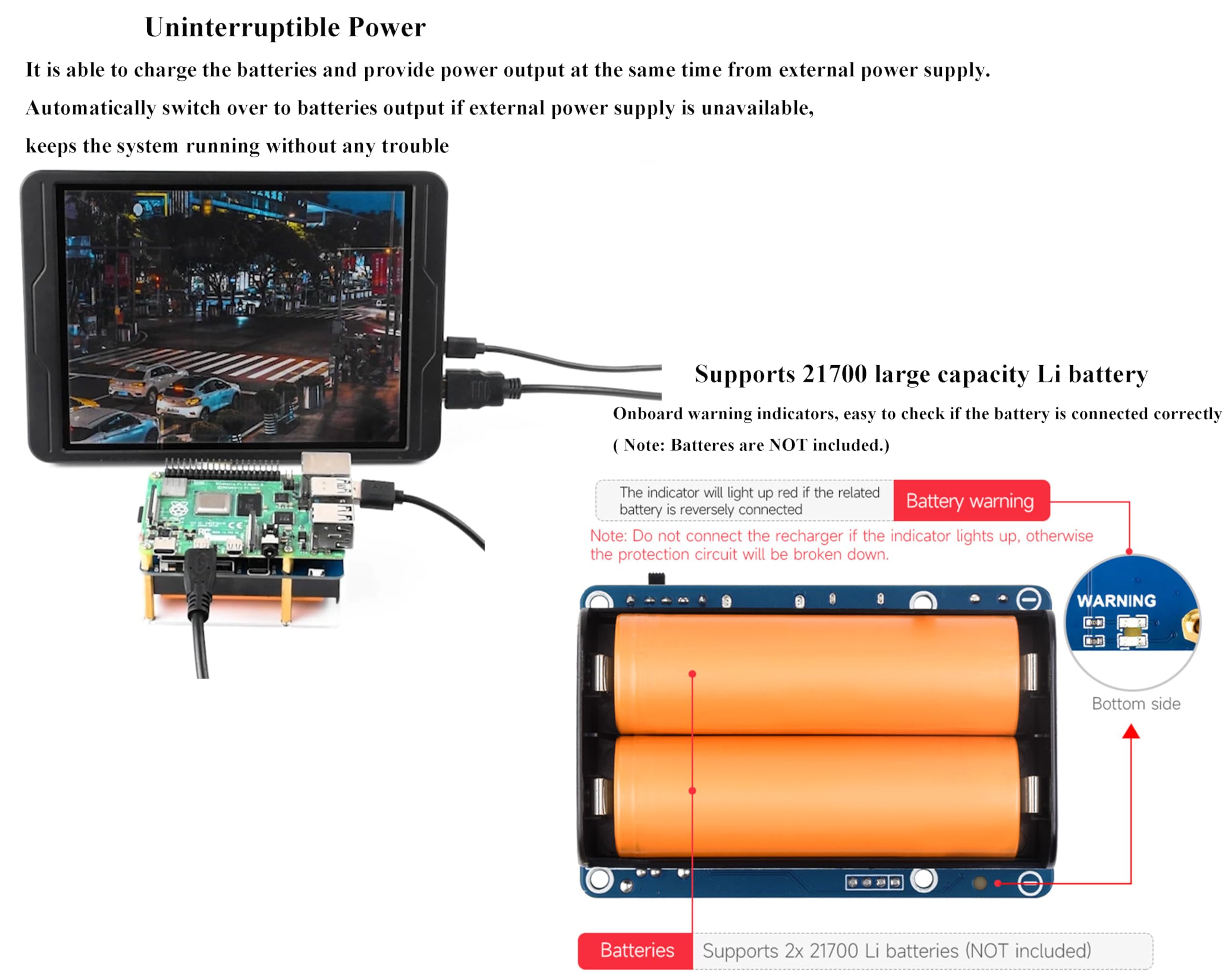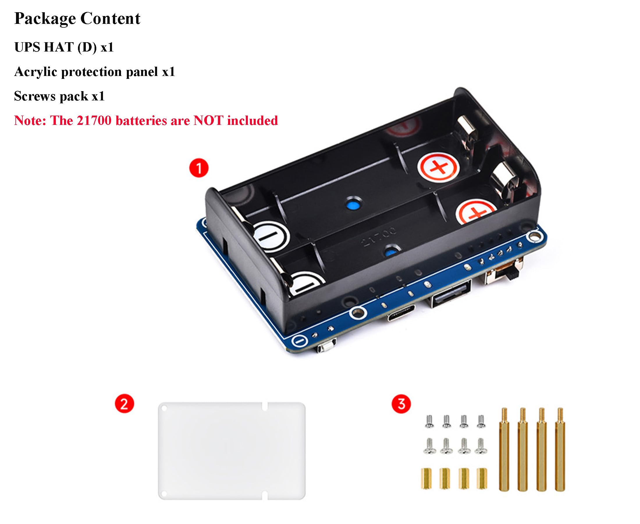 for Raspberry Pi: Uninterruptible Power Supply UPS HAT for Raspberry Pi 4B/3B+/3B, etc. Supports charging and power output at the same time, with dynamic path management, stable 5V output. Supports 21700 ba-tte--ry ( ba-tte--ry is NOT included). Onboard warning indicators, easy to check if the ba-tte--ry is connected correctly