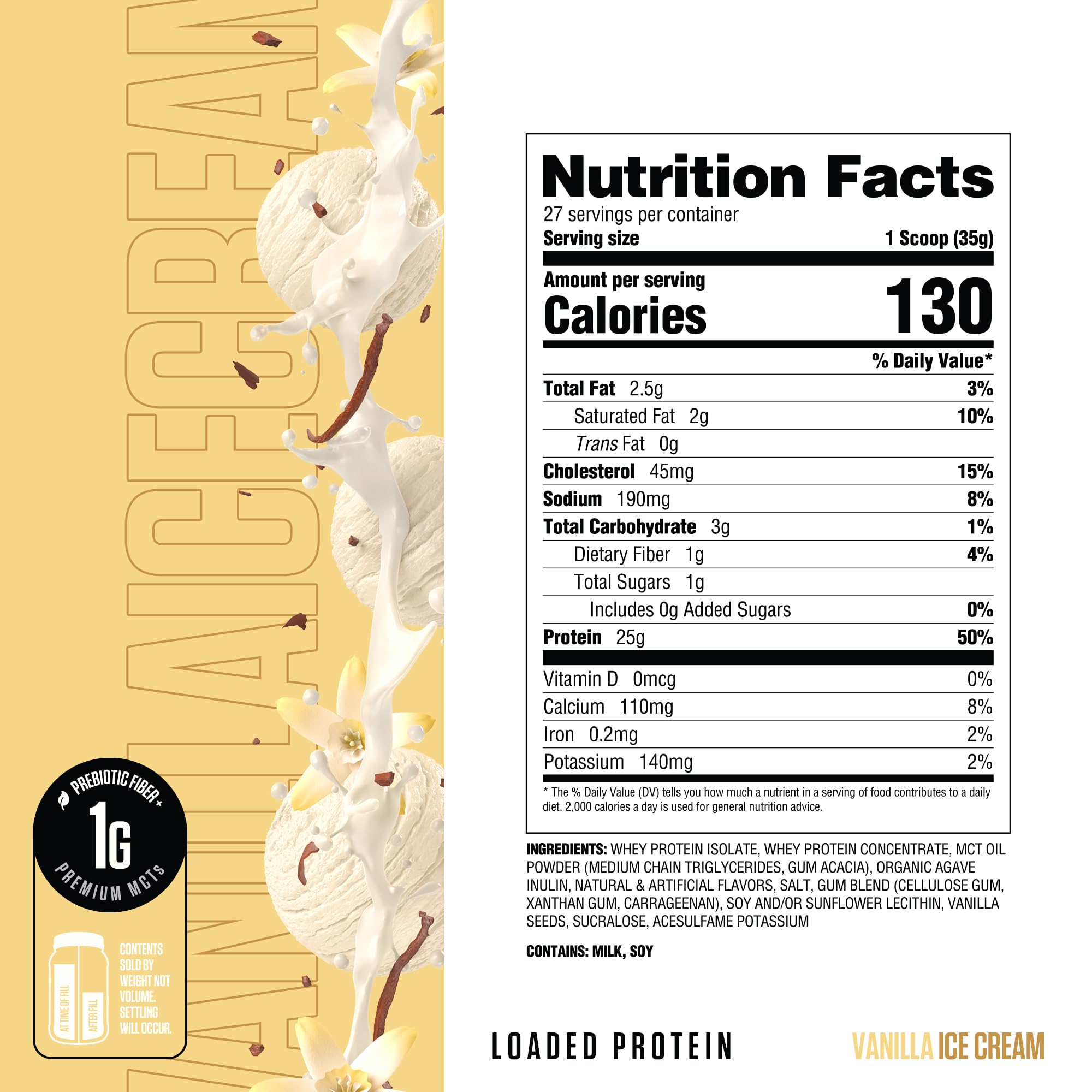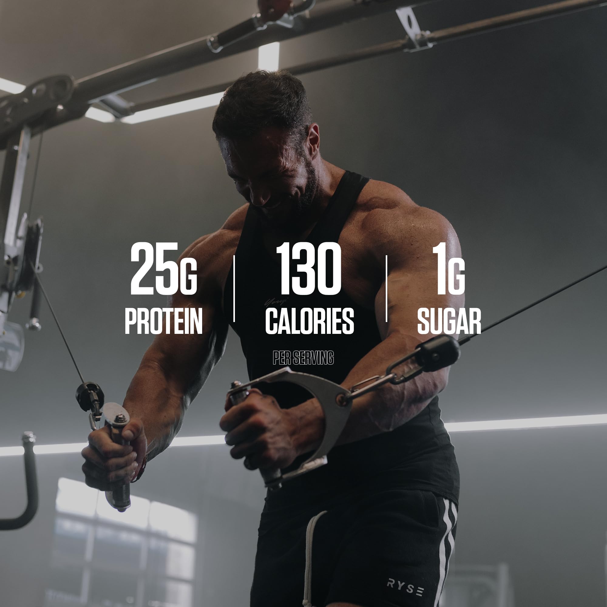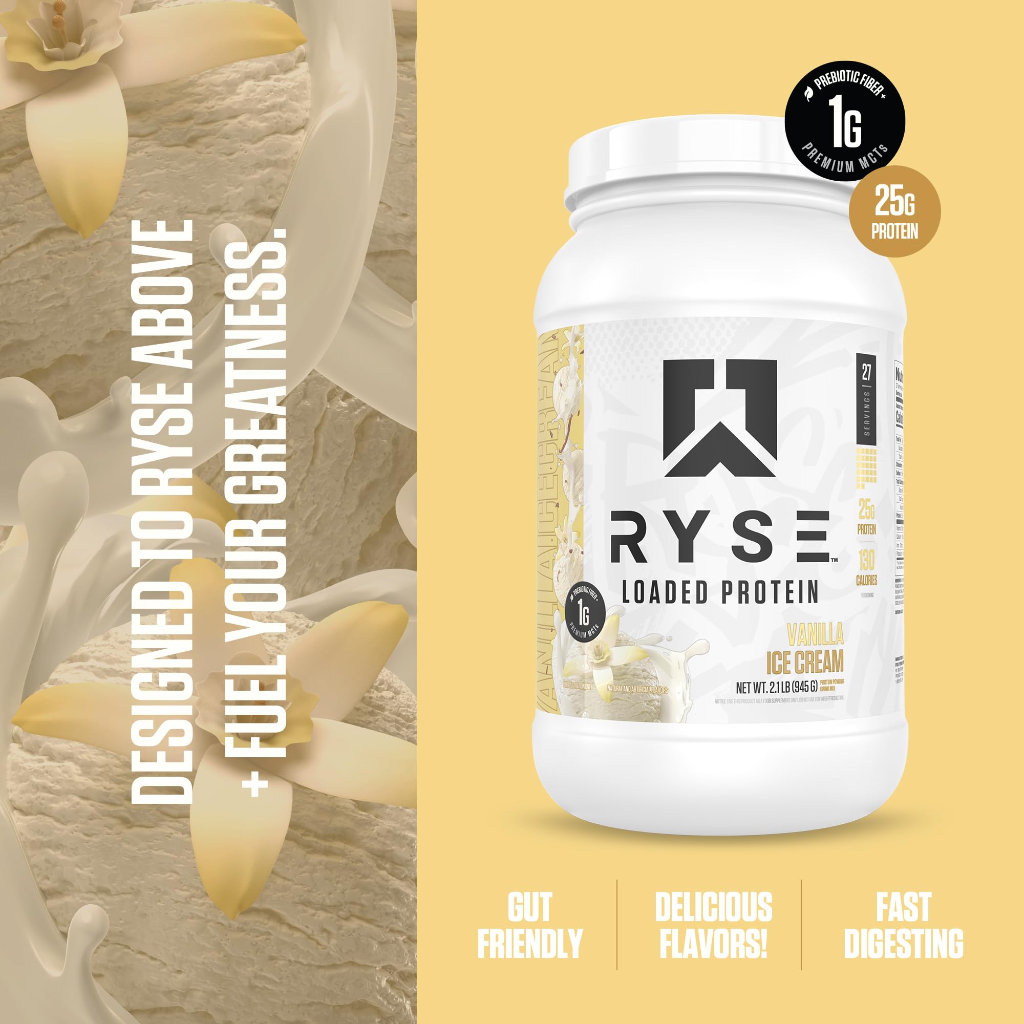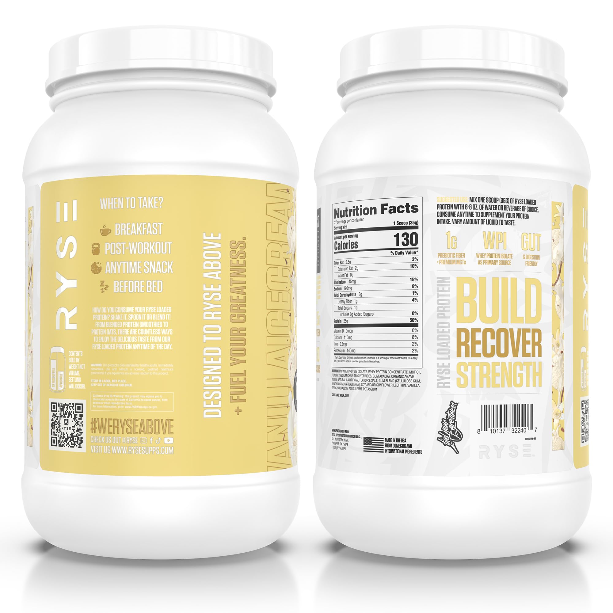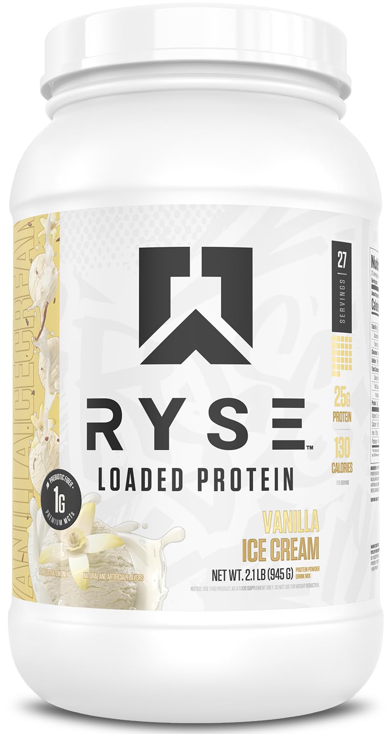 RYSE Loaded Protein is built for those who demand performance without sacrificing flavor. Each scoop delivers 25g of high-quality protein from whey isolate and concentrate to support lean muscle growth and recovery. The addition of prebiotic fiber promotes digestion and gut health, while MCTs offer a clean source of energy and support metabolic function. With a texture that's smooth and easy to mix—and the indulgent flavor of Marshmallow—this protein works as hard as you do, without the bloat or artificial extras.