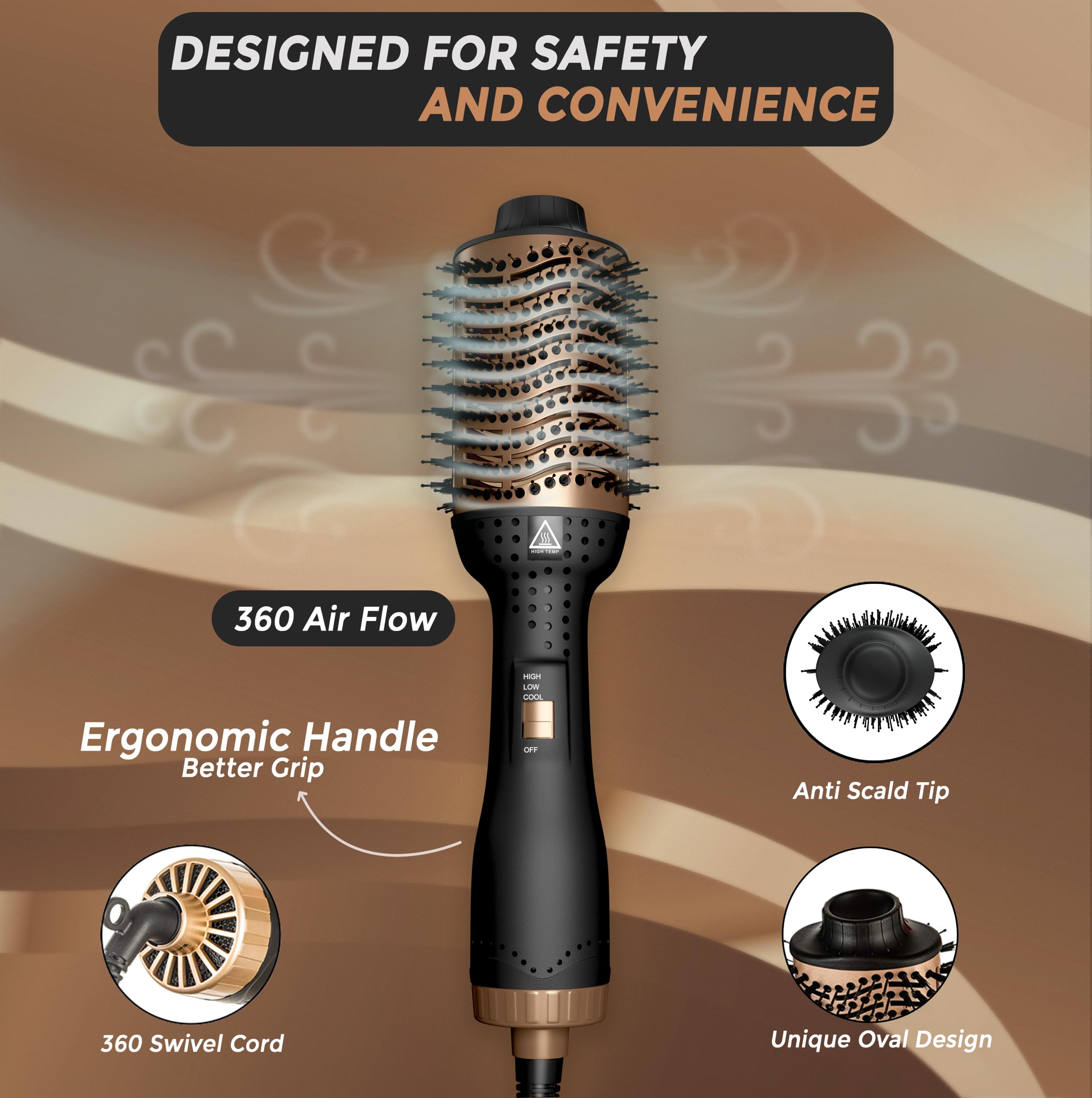 [OVAL DESIGN FOR VERSATILE STYLING]: The unique oval barrel allows for effortless volume and straightening in one step. Whether you want bouncy curls or sleek strands, the IYASA Brush delivers professional results with its versatile styling capabilities.