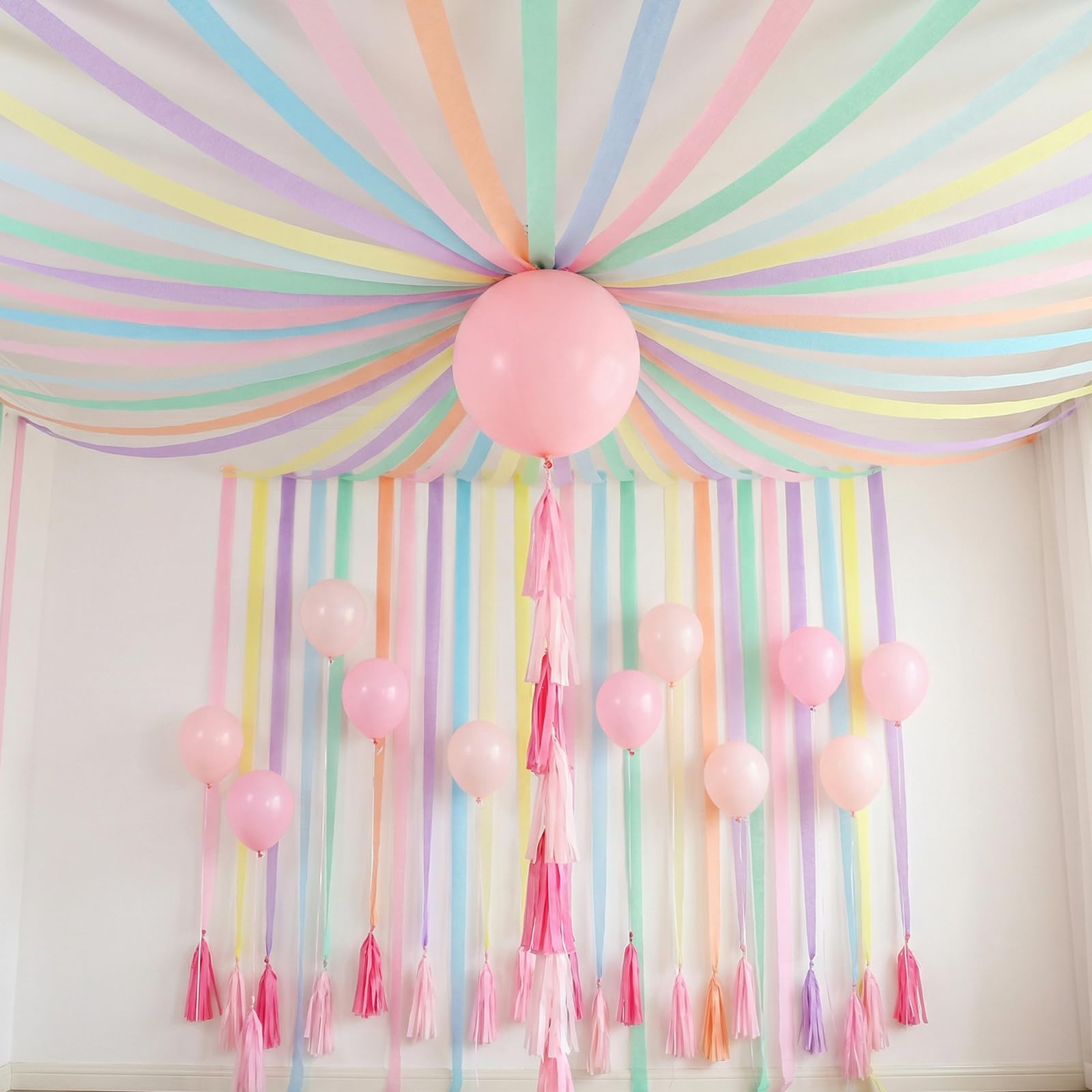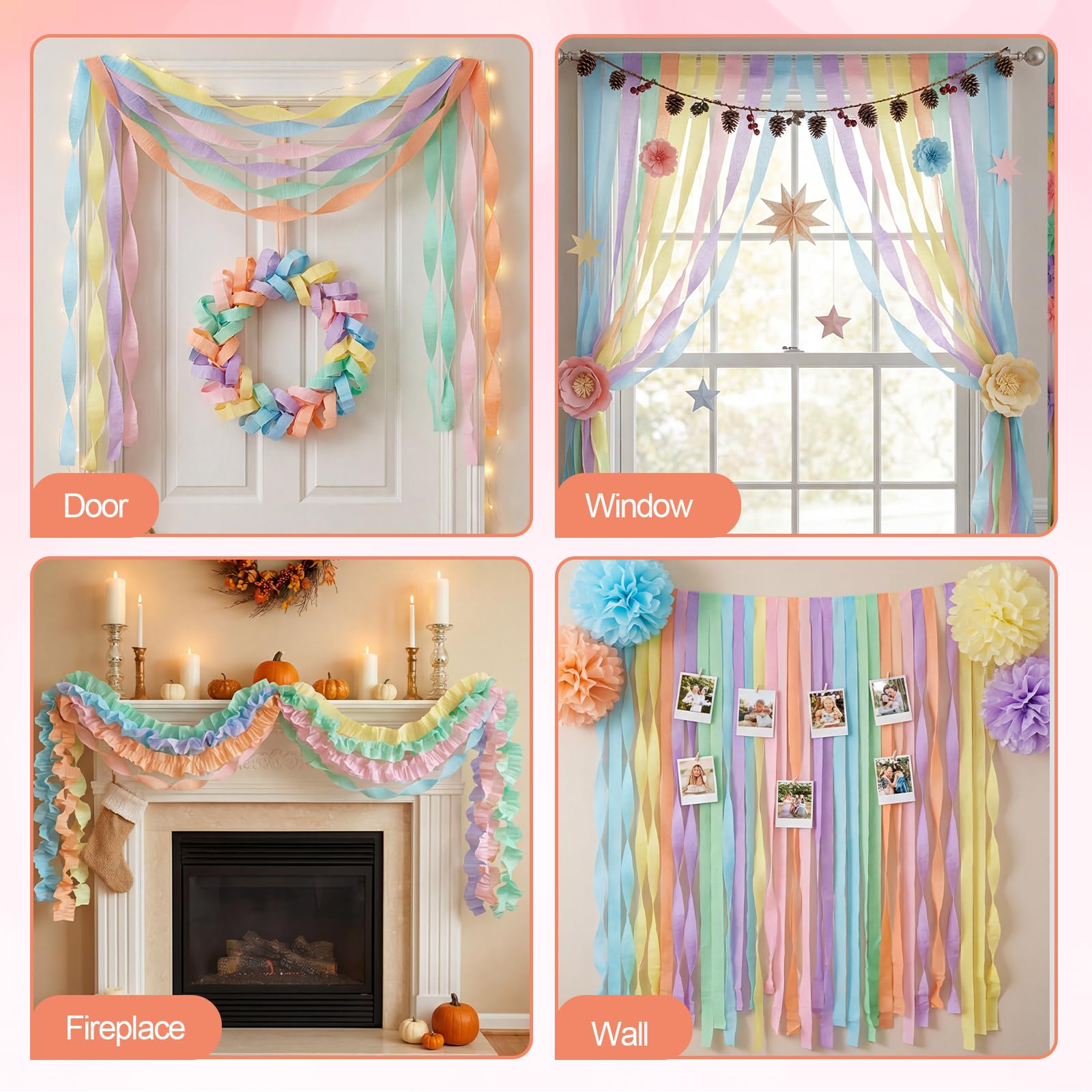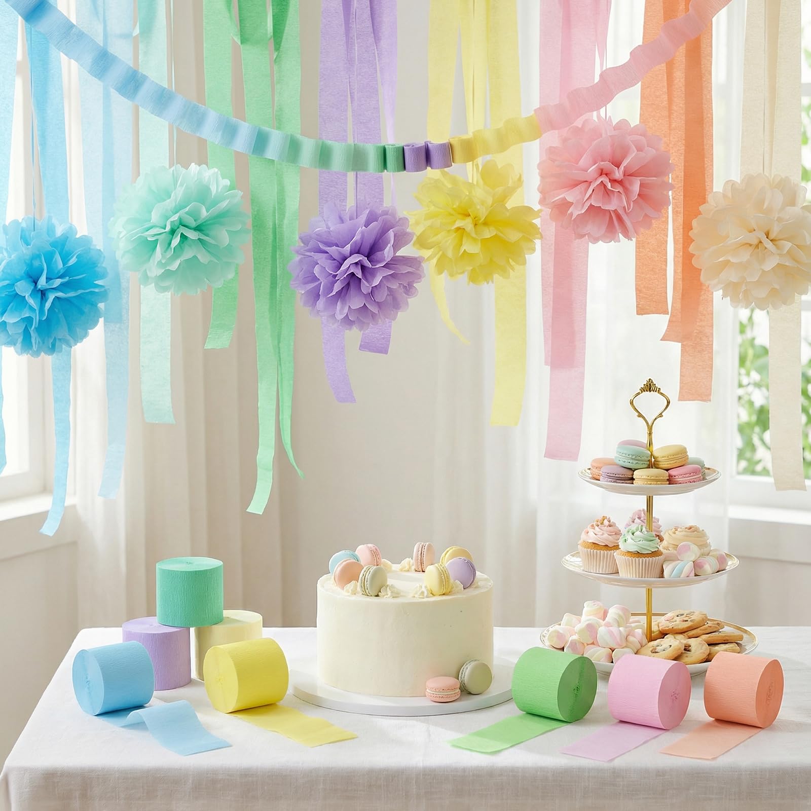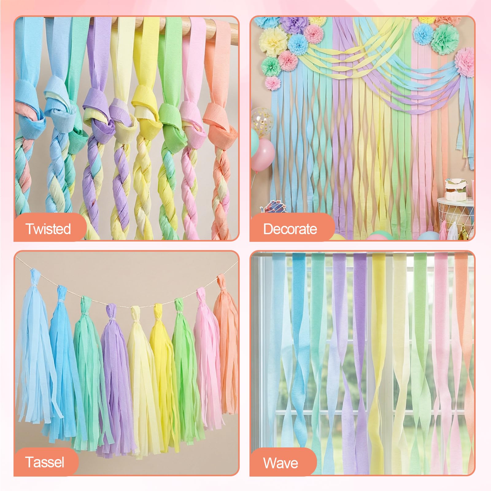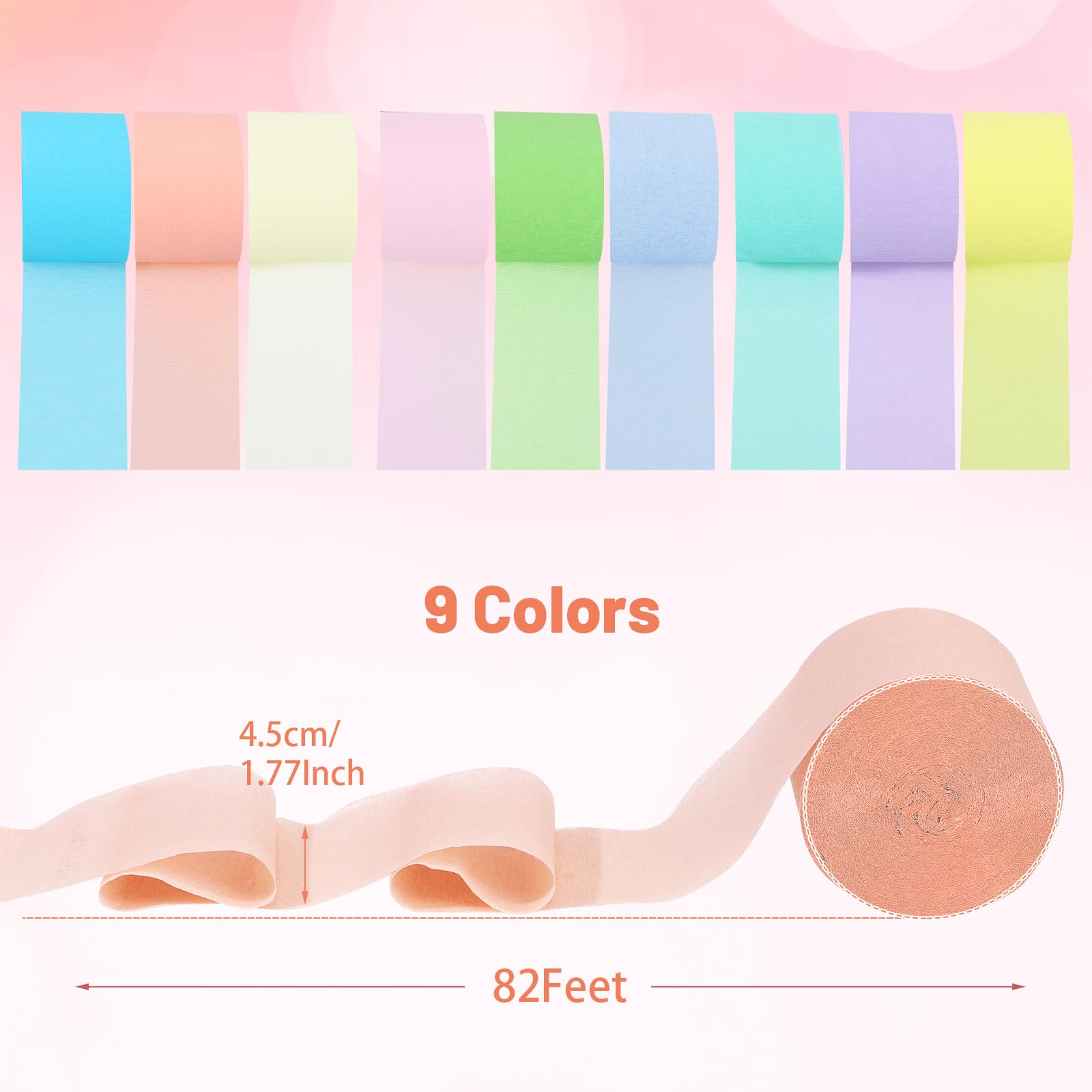 【Package Included】You will get 9 rolls of pastel crepe paper streamers, each roll measures 82 feet long and 1.77 inch wide.