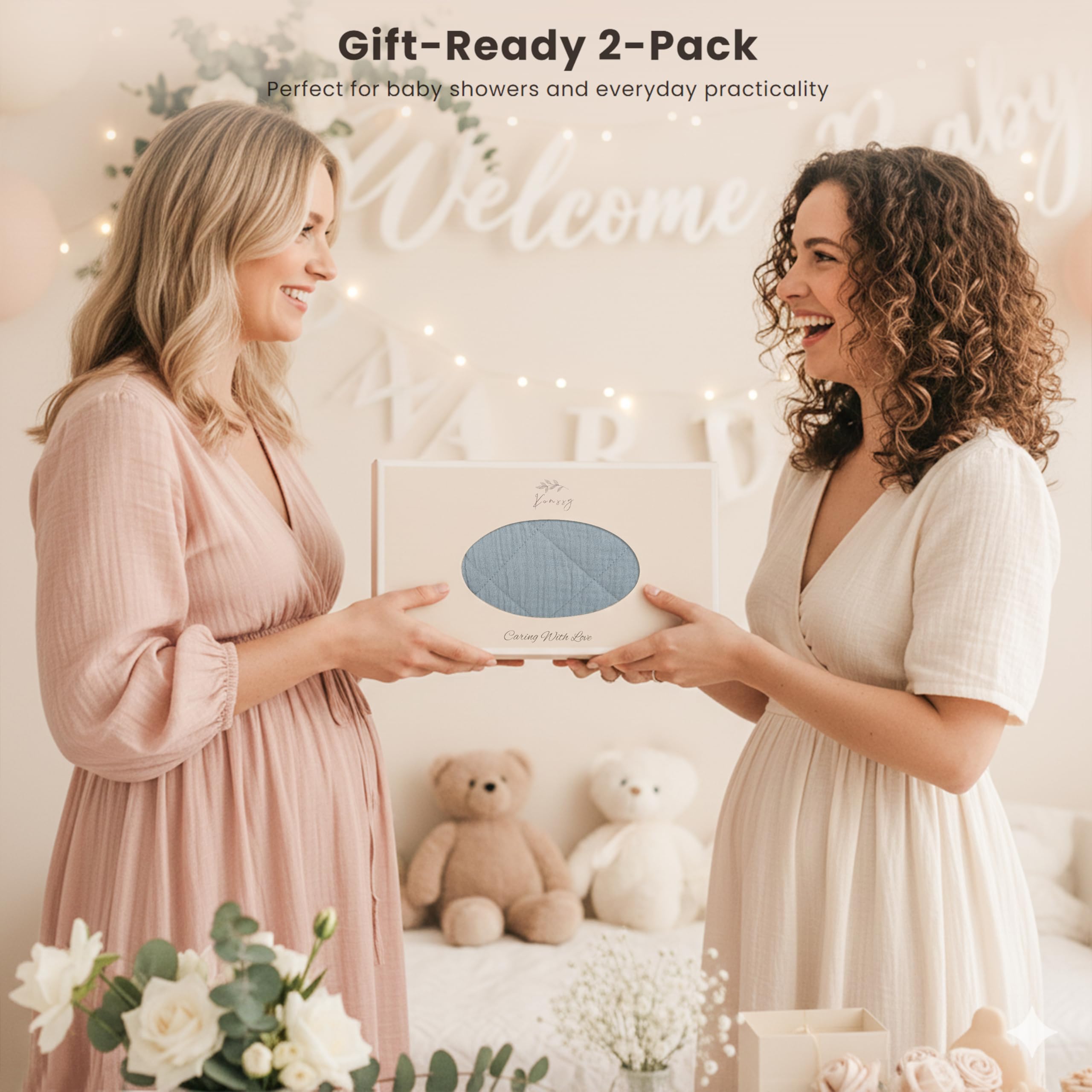 Snug Fit: Our muslin changing pad cover measures 32β x 16βand features a fully encased 360-degree elastic. This design ensures a snug and secure fit on your changing pad. Say goodbye to slipping covers during diaper changes
