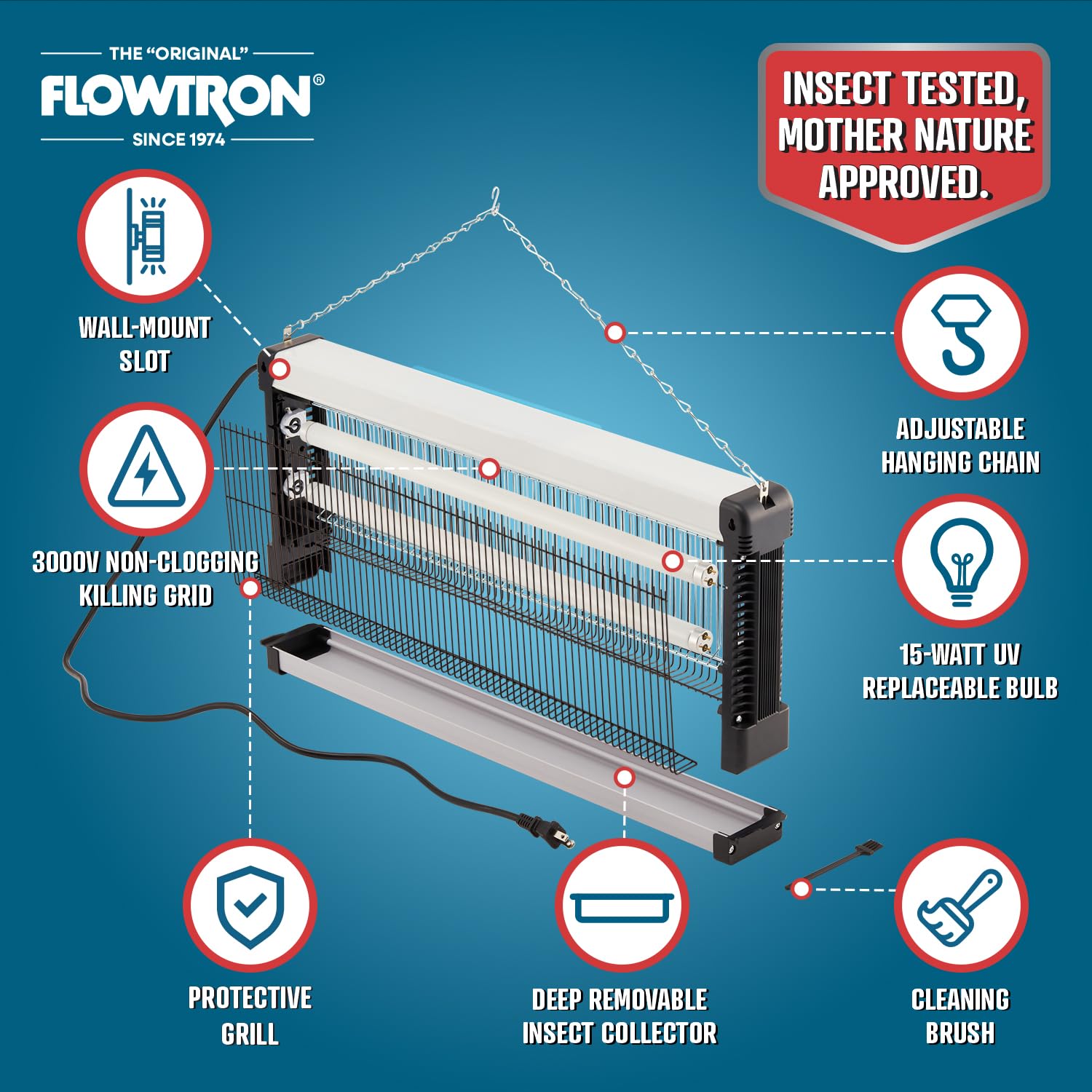 EFFORTLESS MAINTENANCE & CLEANUP | Removable collection tray and accessible grid design make dead insect removal simple | Just unplug unit and brush away debris with included cleaning brush