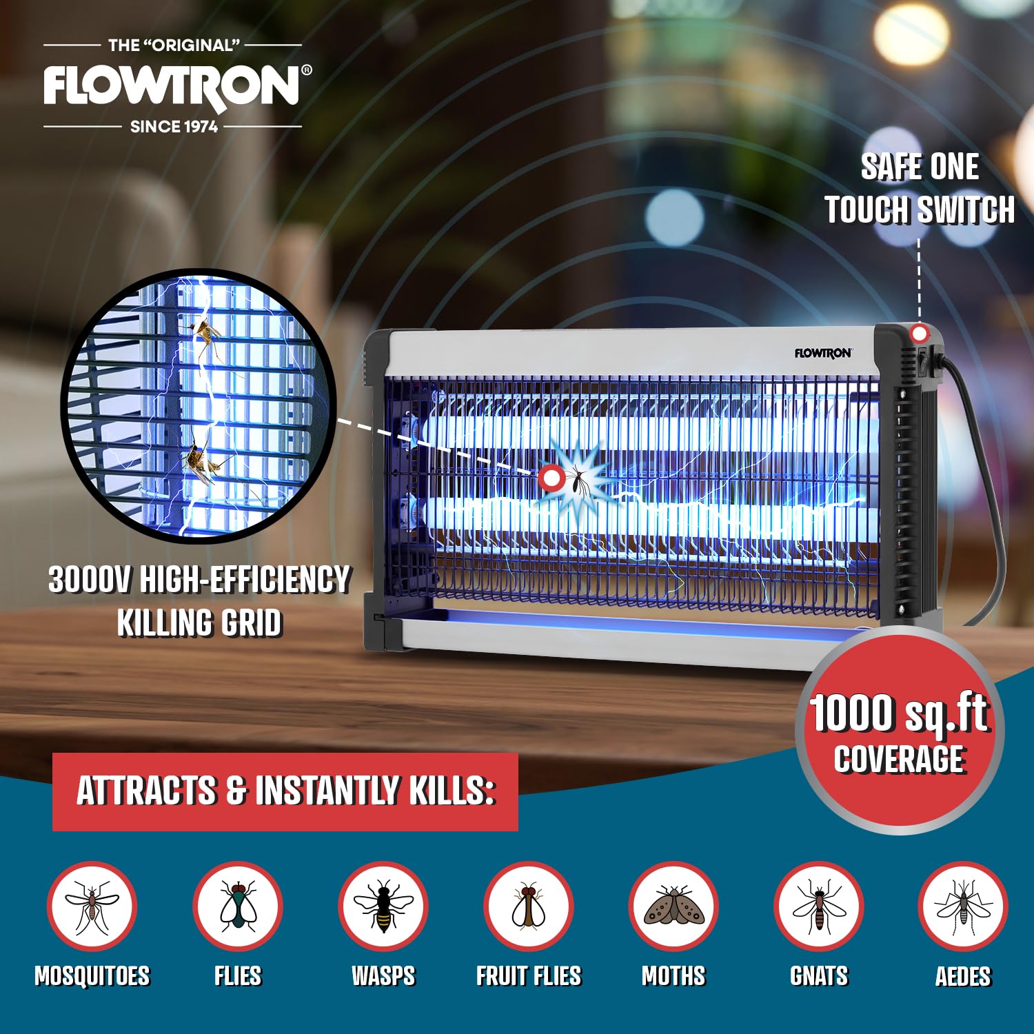 EFFECTIVE 1000 SQ FT COVERAGE AREA | Two 15W UV bulbs attract and eliminate flying pests across bedrooms, kitchens, restaurants, hospitals, RVs, and other indoor environments with maximum efficiency