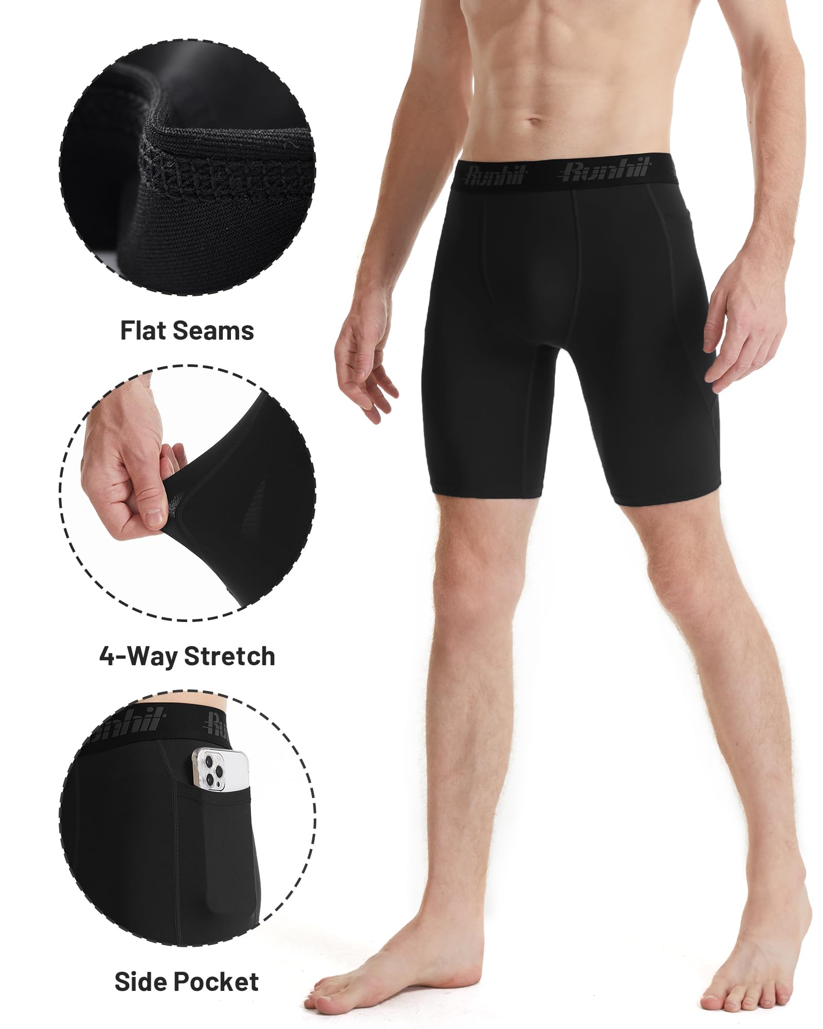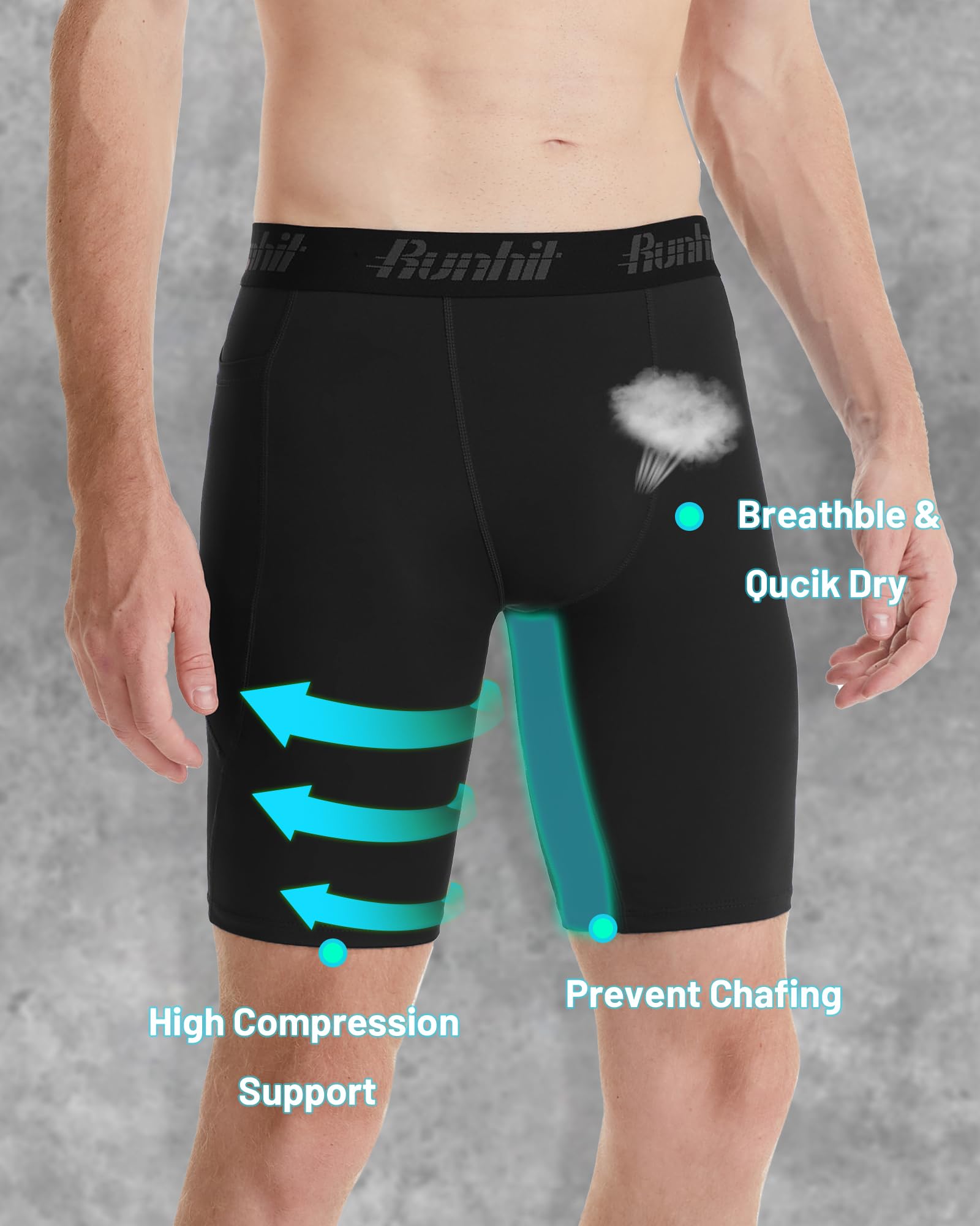 Side Pockets: Men's compression shorts equipped with convenient pockets, these compression shorts allow you to securely carry your phone, keys, or small essentials, keeping them within reach and freeing up your hands