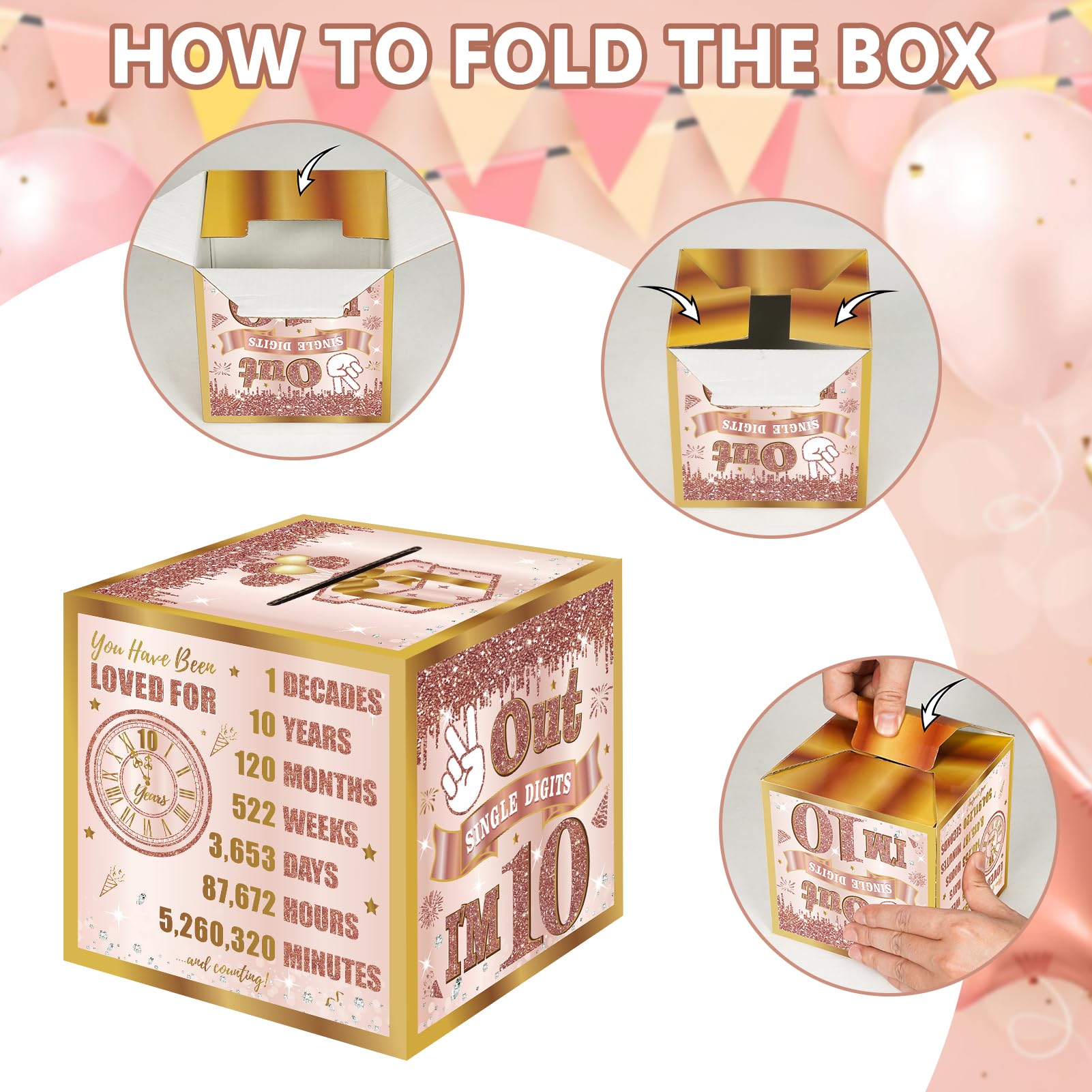 【Happy 10th Birthday Surprise Gift Box】 This unique gift box holds US dollars, enabling you to craft DIY money roll surprises for loved ones on their special day, creating lasting memories as they unwrap it at the party