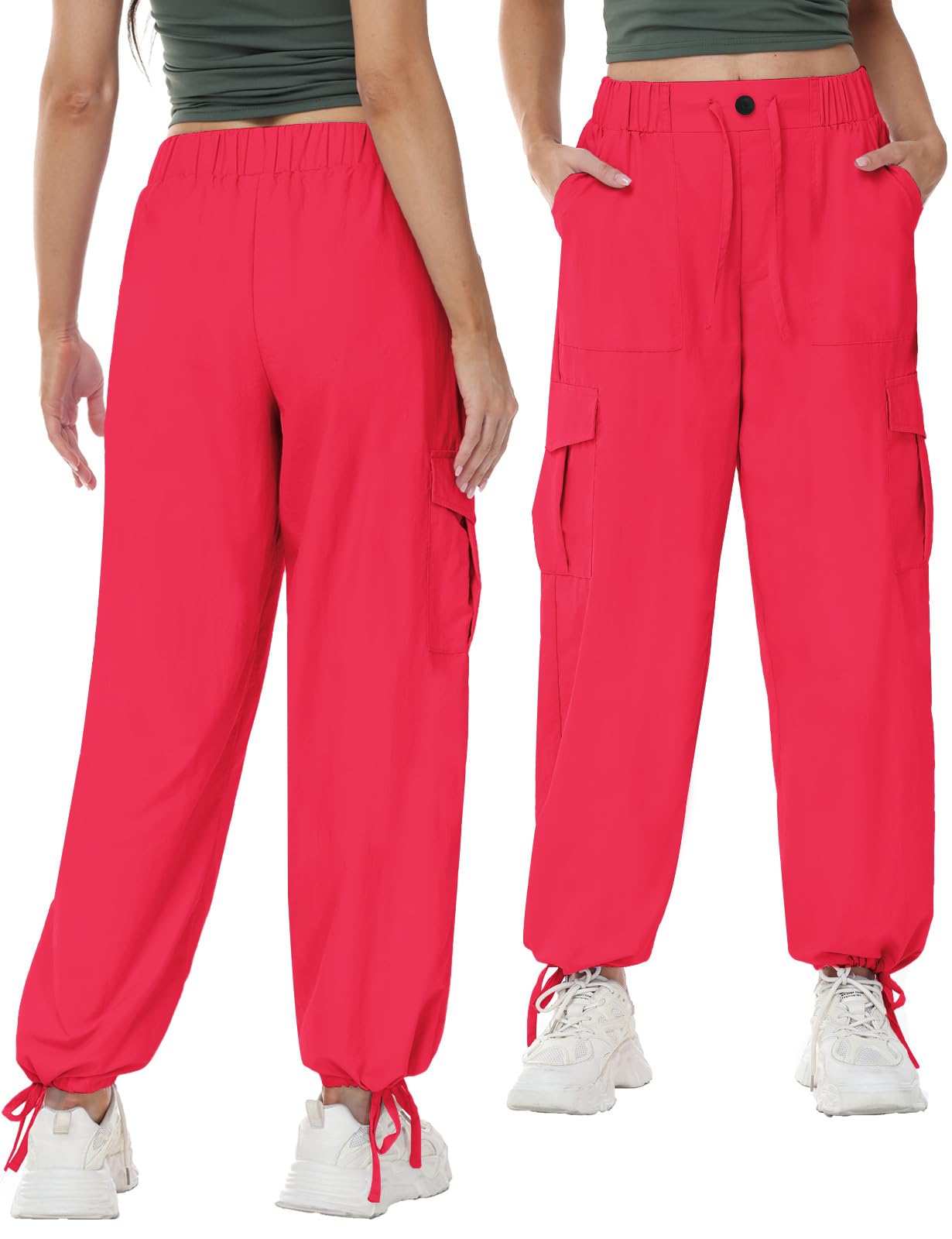 Y2k parachute pants with drawstring at waist and hem to adjust the fit and length
