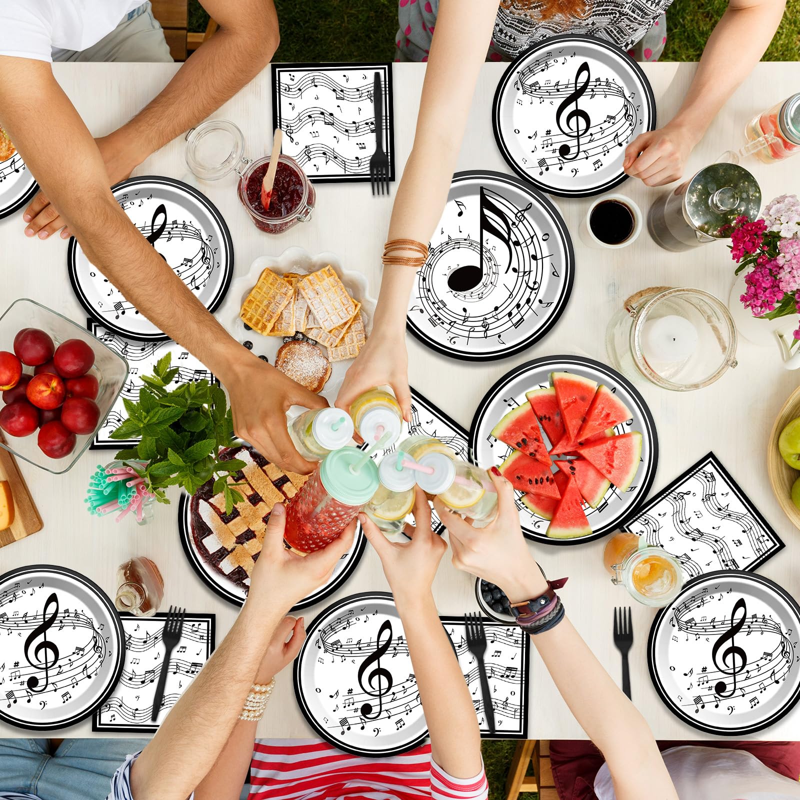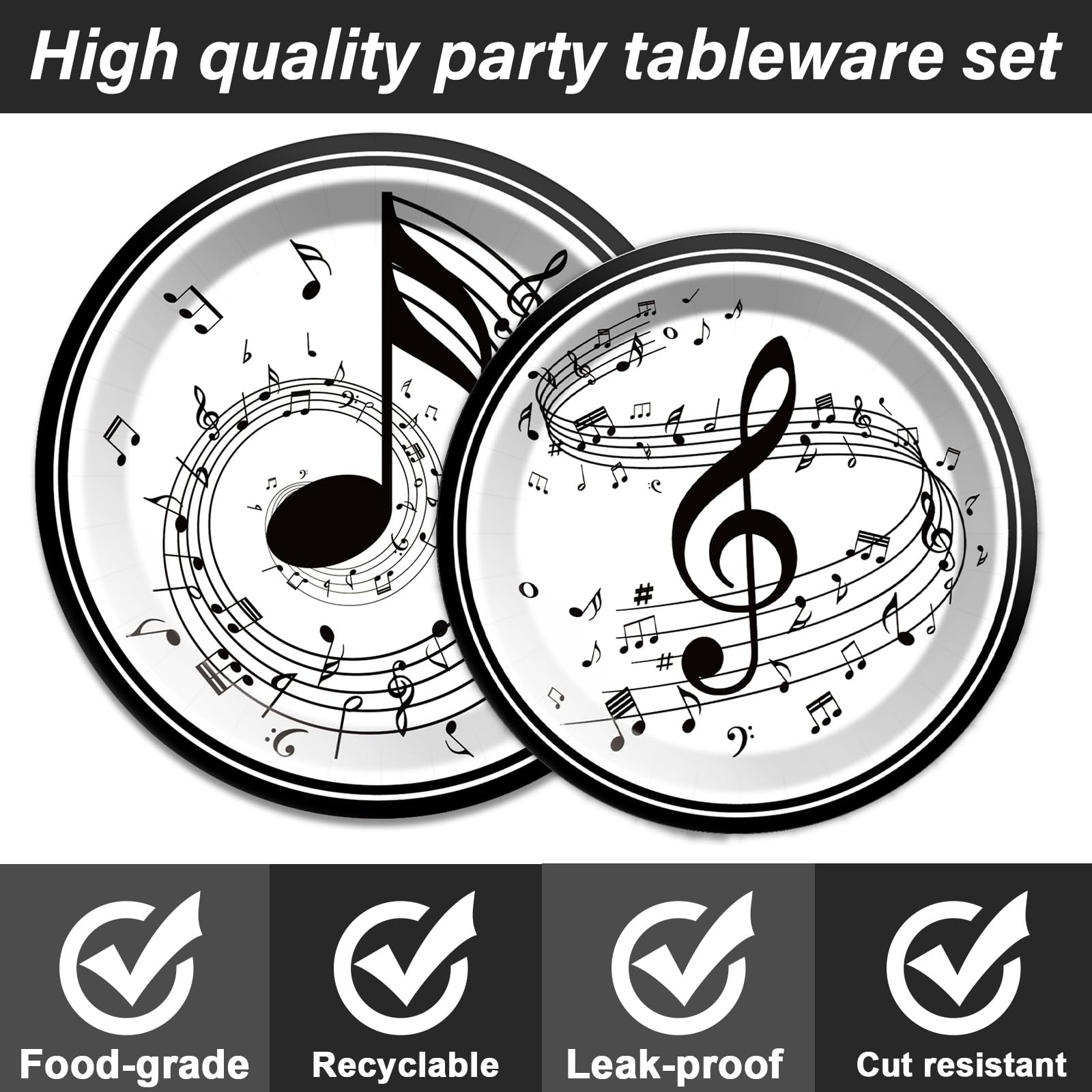 Cute design:These musical note tableware are printed with musical notes and staff patterns, which can create a good visual enjoyment, interesting and attractive, making you feel like you are experiencing a musical event, very suitable for birthday parties and baby showers.