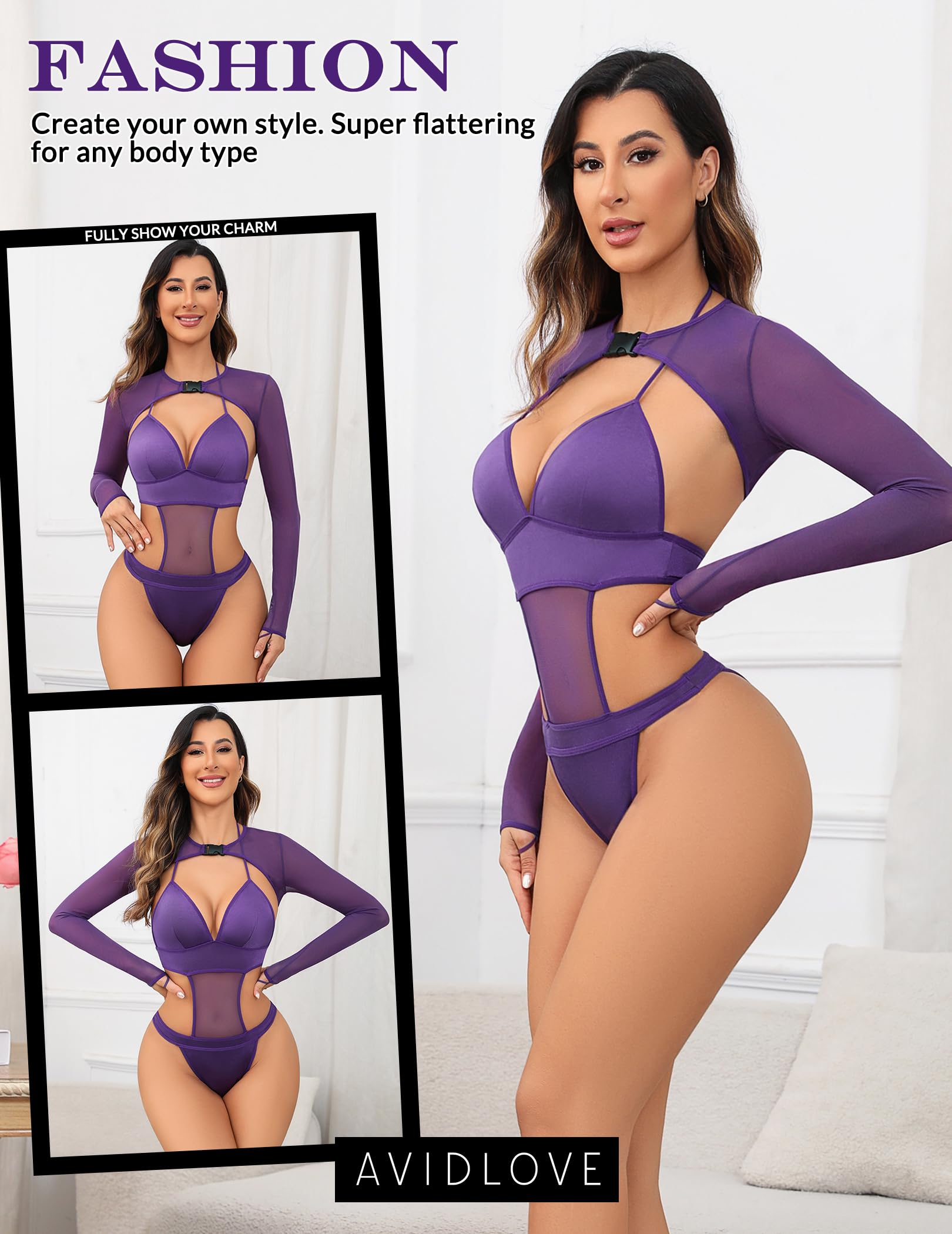 This rave outfits set includes a backless bodysuit and a shrug shoulder top that can be mixed and matched to create different looks that suit your style. The mesh crop top is designed with a plastic buckle closure, making it easy to put on and take off. Wear it with a lace bralette, tank, camisole, or bra for a club-ready outfit or a more casual look. Thumb holes keep your sleeves in place