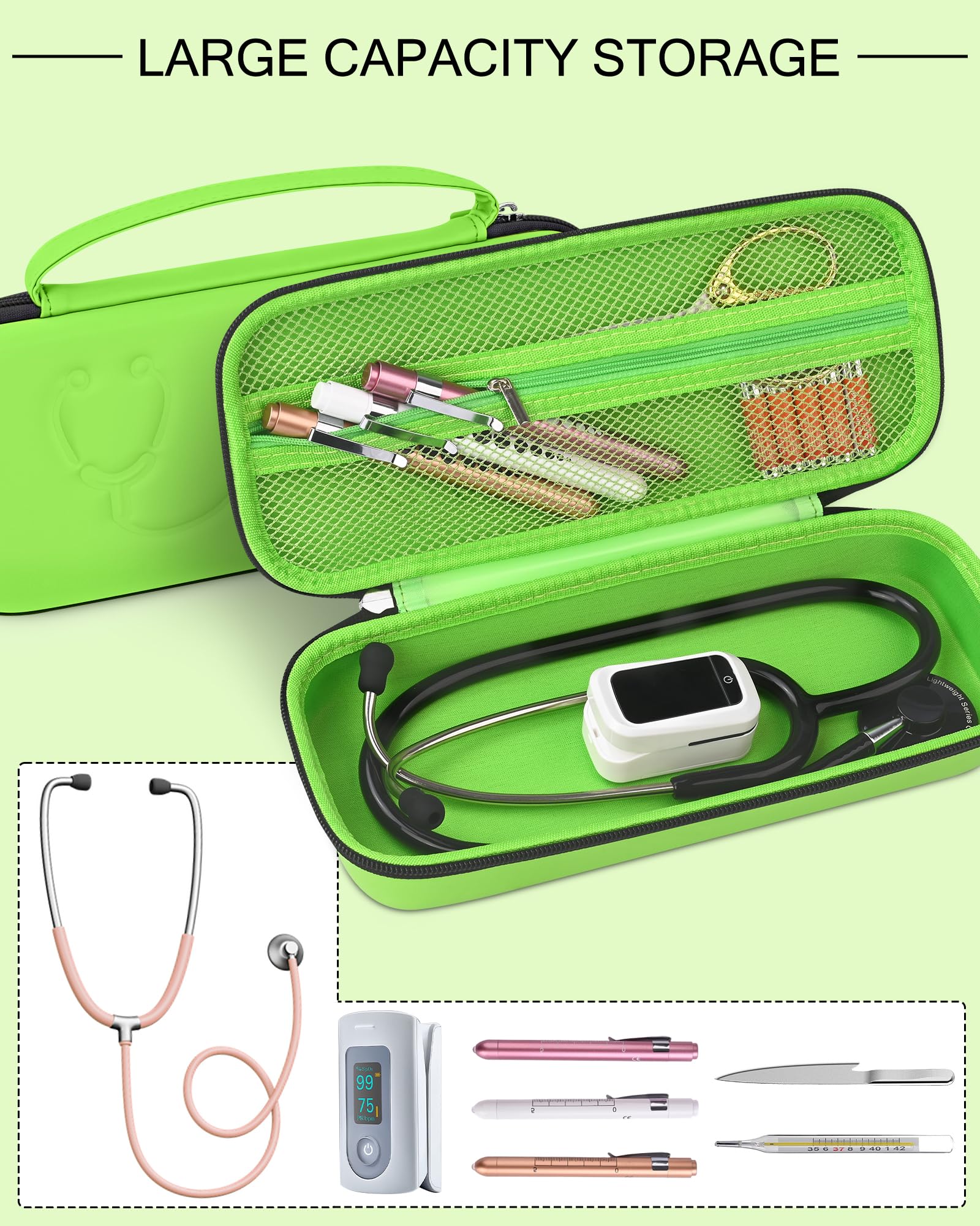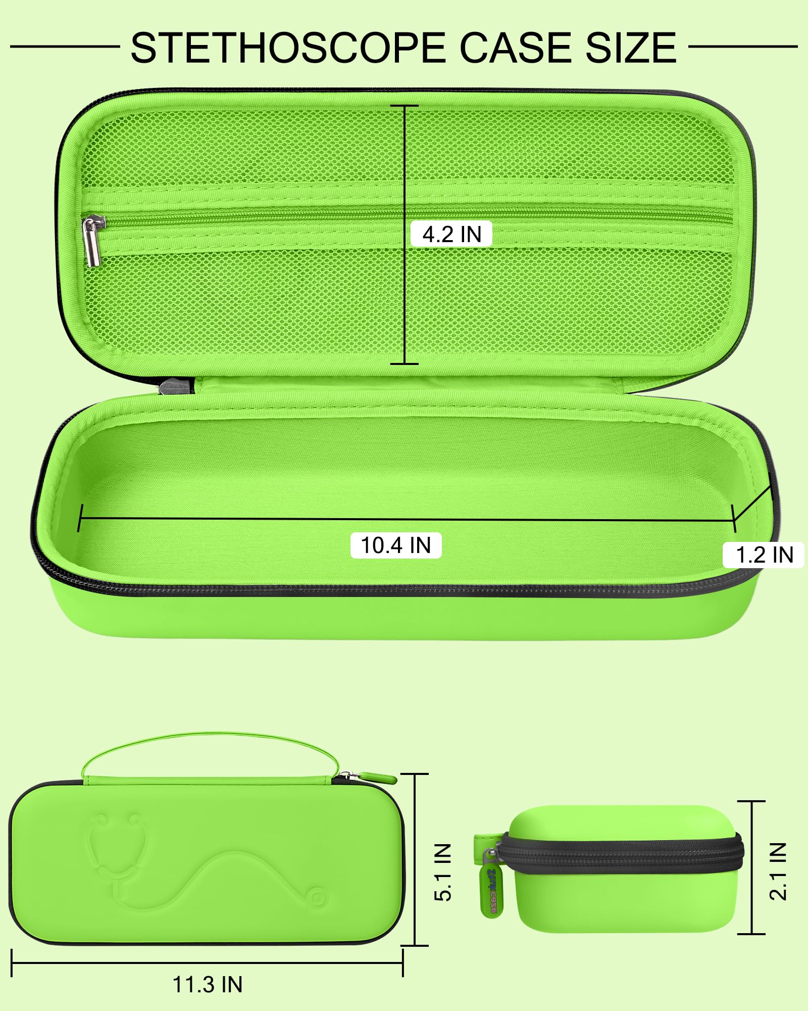 【LARGE SPACE】STUKCAZE stethoscope case bottom size is 10.4 x 4.2 IN, fit for most type of stethoscopes such as 3M Littmann Classic III, Lightweight II S.E, MDF Acoustica Stethoscope.