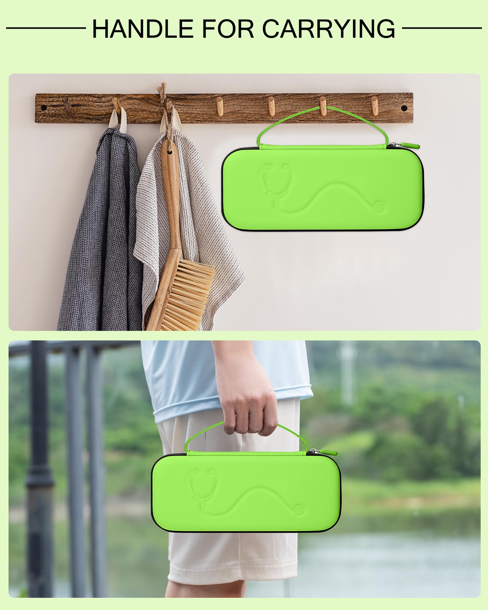 【PORTABLE CARRYING】The handle on stethoscope case conforms to the mechanical design of the human body, convenient for take outdoor or use at home, you can put it on table, shell and hang on the wall.