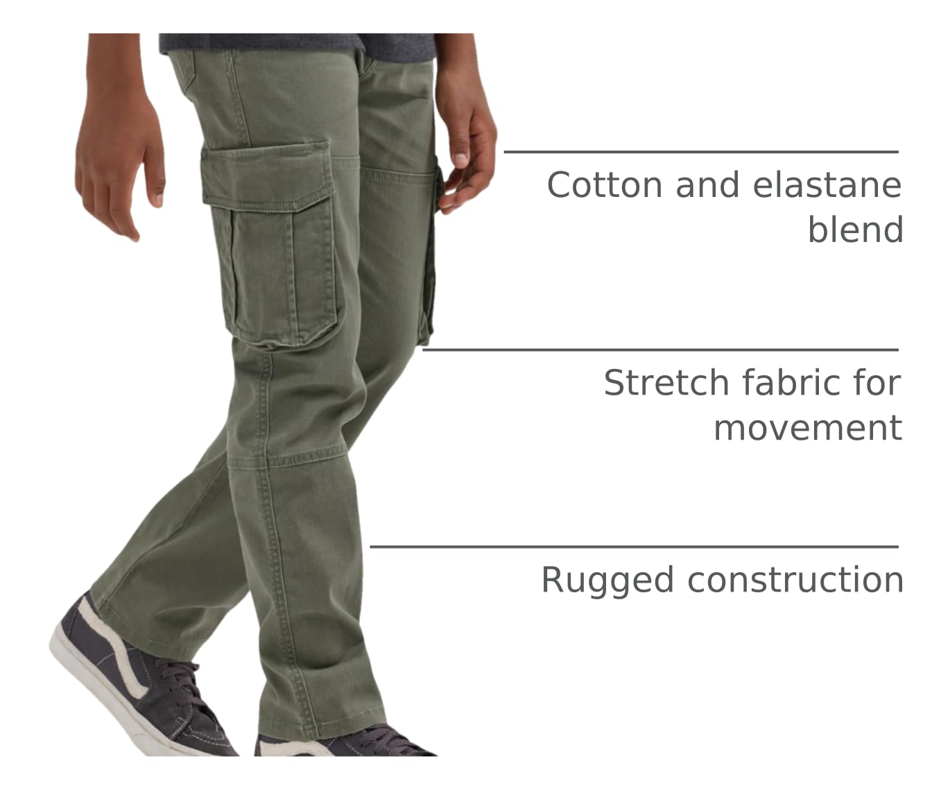 TOUGH AND COOL CARGOS. These straight leg cargos are made for boys who are always on the go! With a rugged design and comfy fit, they're ideal for all of his outdoor adventures and playtime.