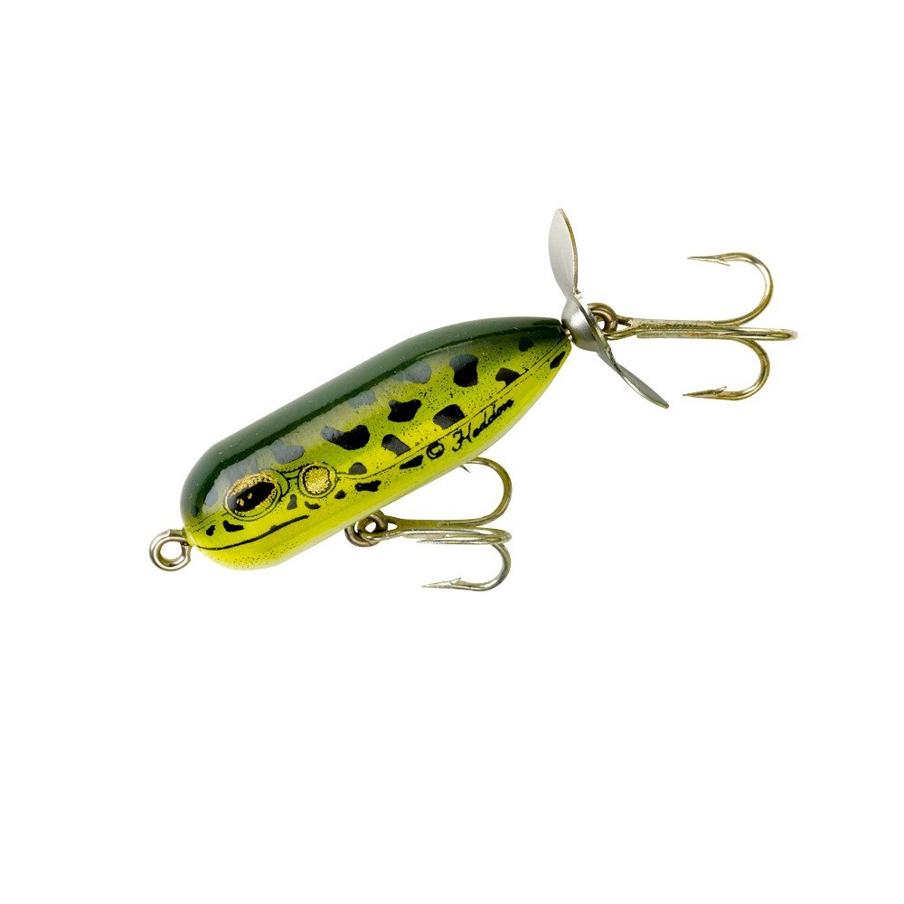 The Heddon Torpedo has been the world’s top-selling, top-producing spinner-equipped lure for generations. The shape and weight allow anglers to cast these lures a little farther than many other prop-baits to reach special fish-holding spots quicker and easier. The Torpedo creates a wild, splashing surface disturbance, making them the perfect lures for schooling fish. Use quick, short and erratic twitches to make a Torpedo perform at its best, producing explosive, heart-stopping surface strikes.