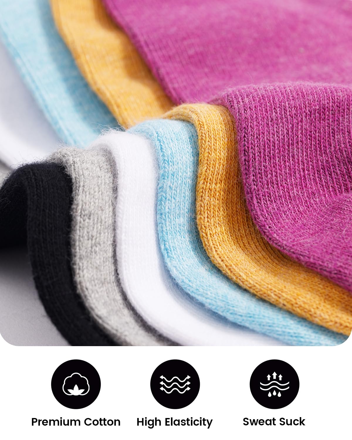 Premium Material for Comfort:Crafted from a blend of soft and breathable fabrics, including cotton, spandex, and polyester. The cotton offers natural breathability, keeping your feet fresh throughout the day. Spandex provides just the right amount of stretch, ensuring a snug fit, while polyester adds sturdiness to withstand daily wear.