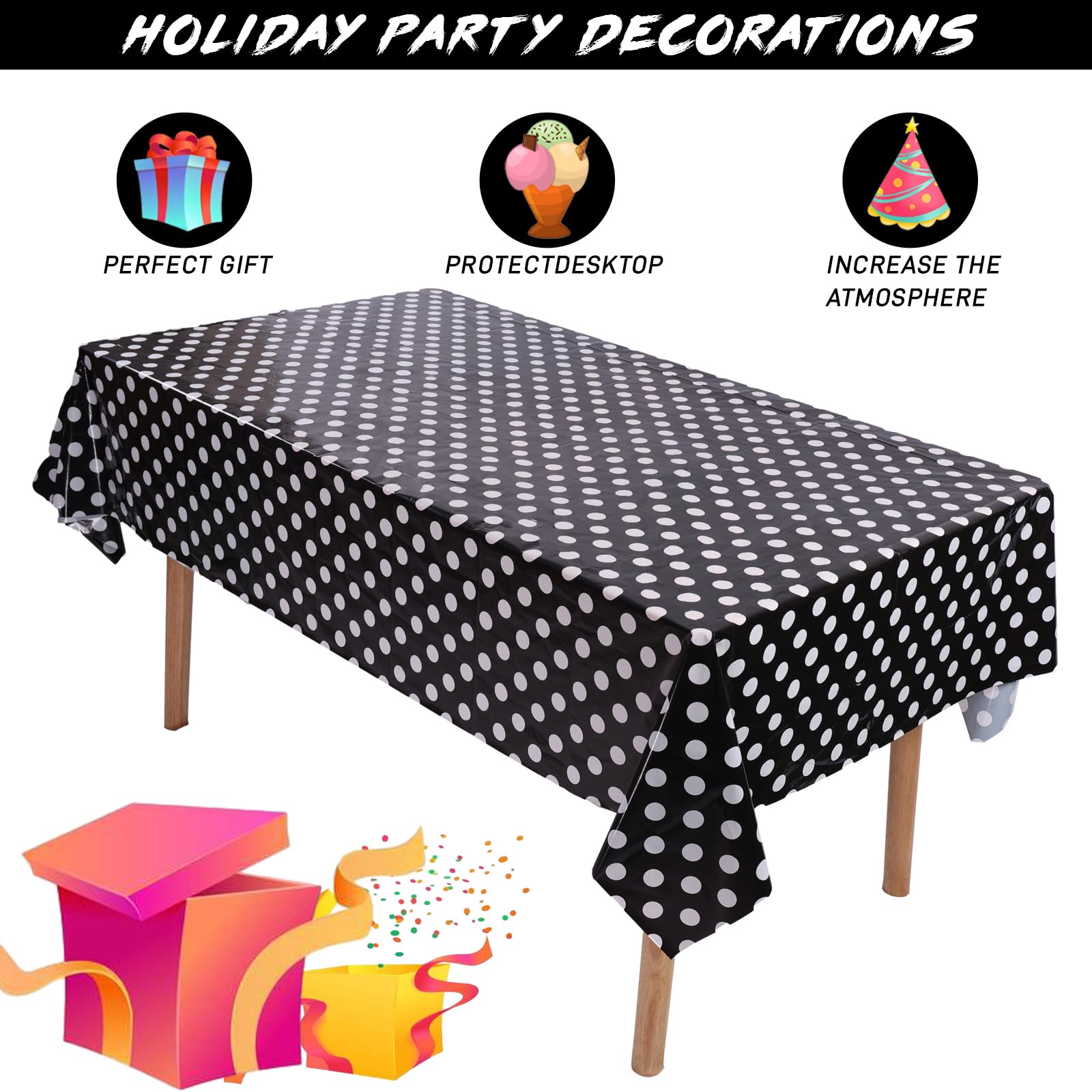 Abundant quantity: You will receive 5 pieces of Black Polka Dot Table Covers , the size is 54x108 inch, the quantity can meet your needs for everyday picnic parties, black minnie mouse birthday decorations, black wallpaper backgrounds