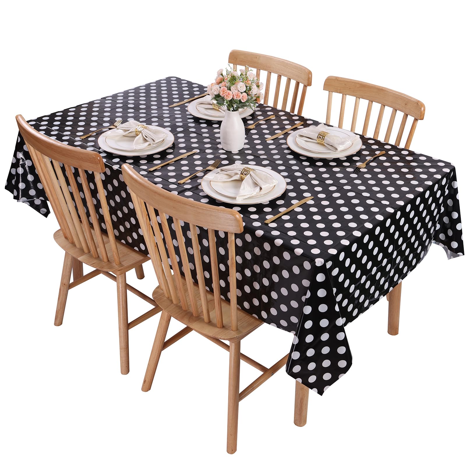 Proper size: These Black and White Polka Dots Party Table Cloth measures approximately 54 x 108 inch which is designed with a classic polka dot pattern that fits nicely into the colors of indoors or outdoors party and dining . Easy to cut into any shape to fit party backgroun