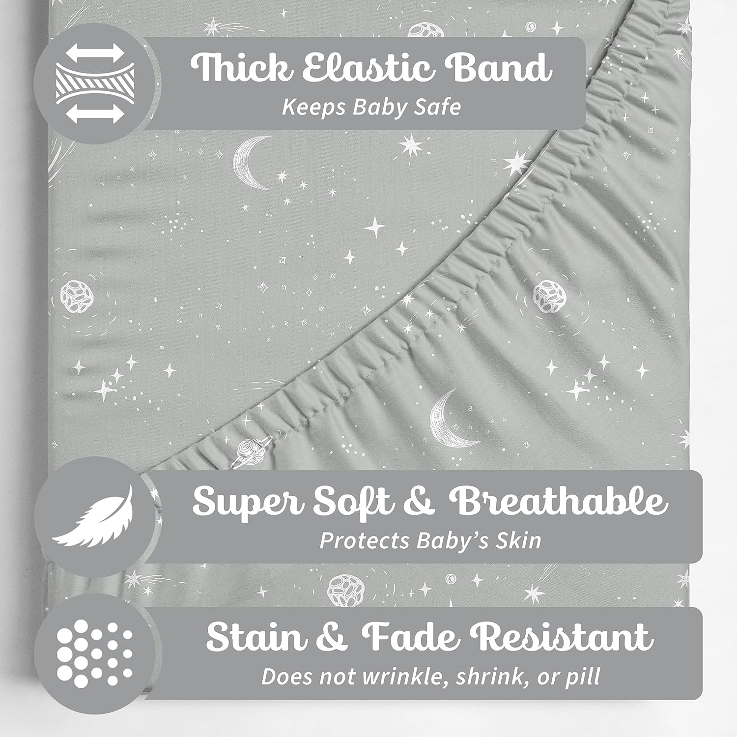 π BEAUTIFUL DESIGN, INCREDIBLY SOFT & BEAUTIFUL β This beautiful custom pattern is printed on the most luxuriously soft cotton blend. Thicker elastic and deeper pockets ensure that our changing table sheets will NOT slip off the changing pad. Youβll feel the incredibly soft, yet stretchy and silky material as you pull the cover snug, creating a safe and soothing place for your baby.