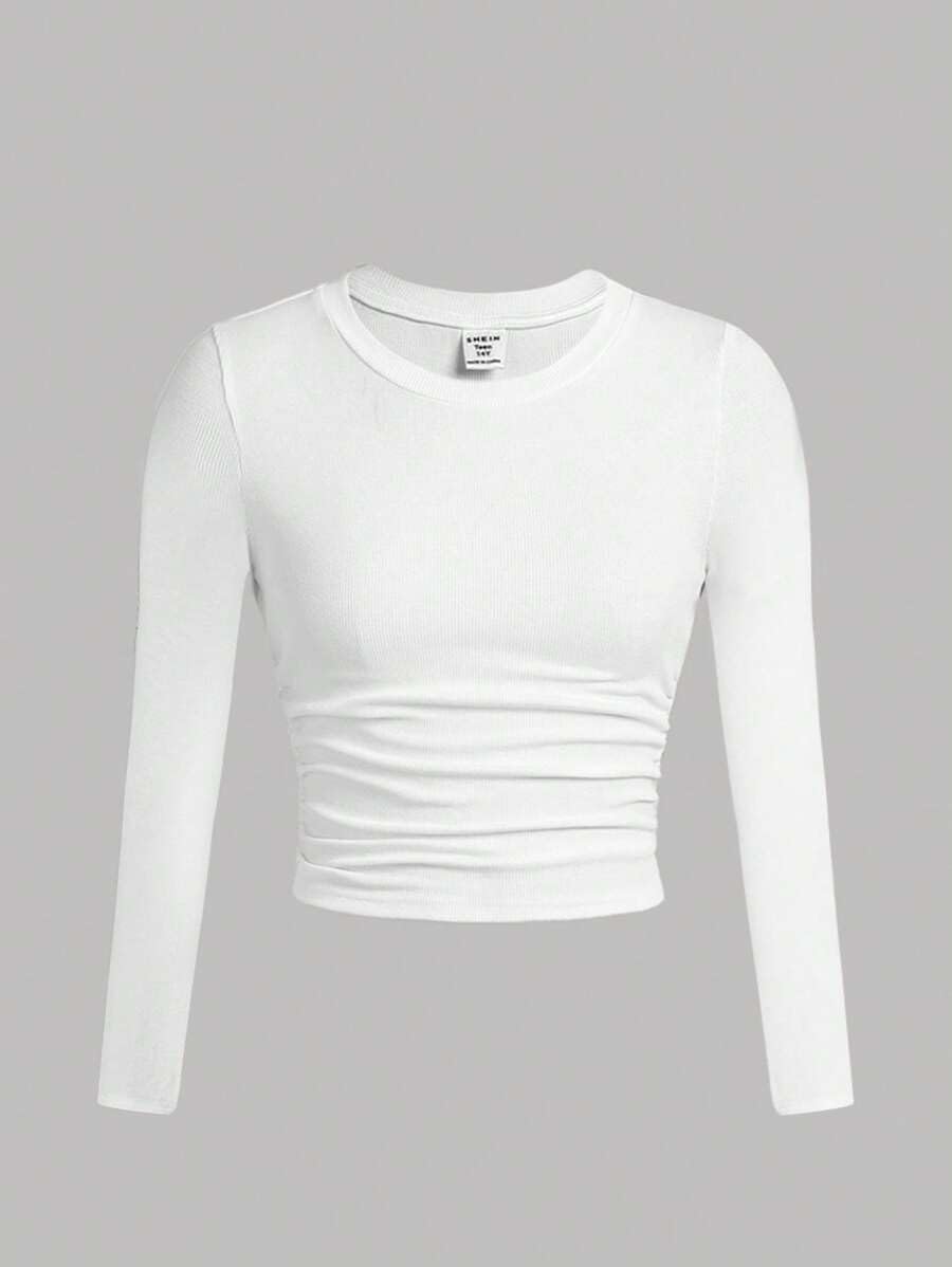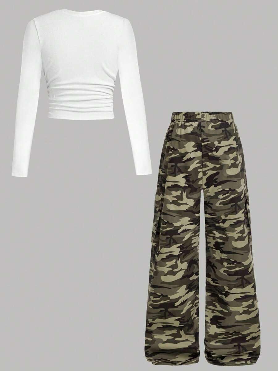👖 Trendy Yet Practical – The ruched long sleeve tee pairs perfectly with the high-waisted cargo joggers, creating a cute outfit for girls who love both fashion and function.