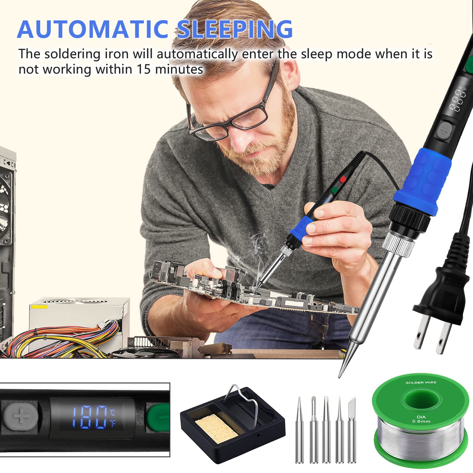 🔧 Auto Standby & Auto Sleep - After the sleep mode is turned on, the soldering iron will automatically enter the sleep mode when it is not working within 15 minutes. Automatic standby and automatic sleep can effectively extend the service life of the soldering iron