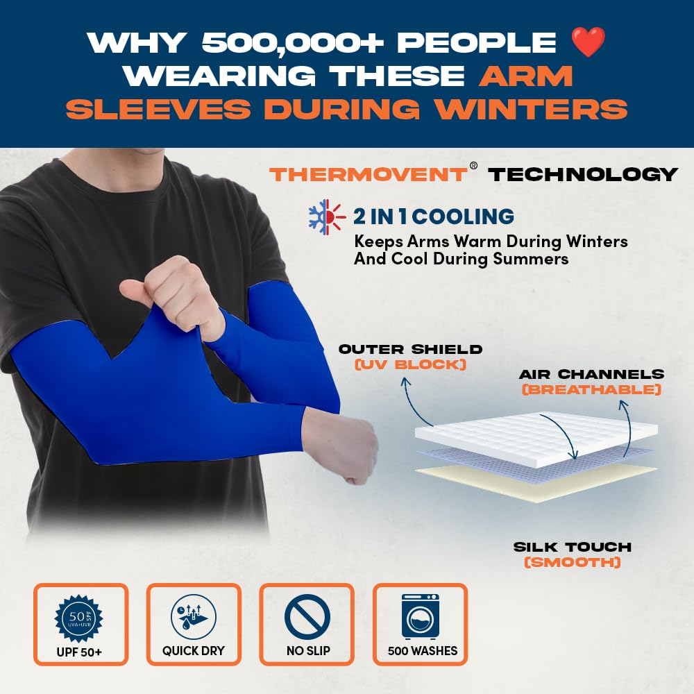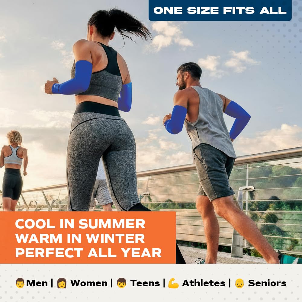 PROTECTION: Each compression sleeve arm protector is made from UV resistant material, our arm sleeves for women or men offer sun UV protection from over 98 percent of harmful rays; in colder months they make fantastic arm warmers