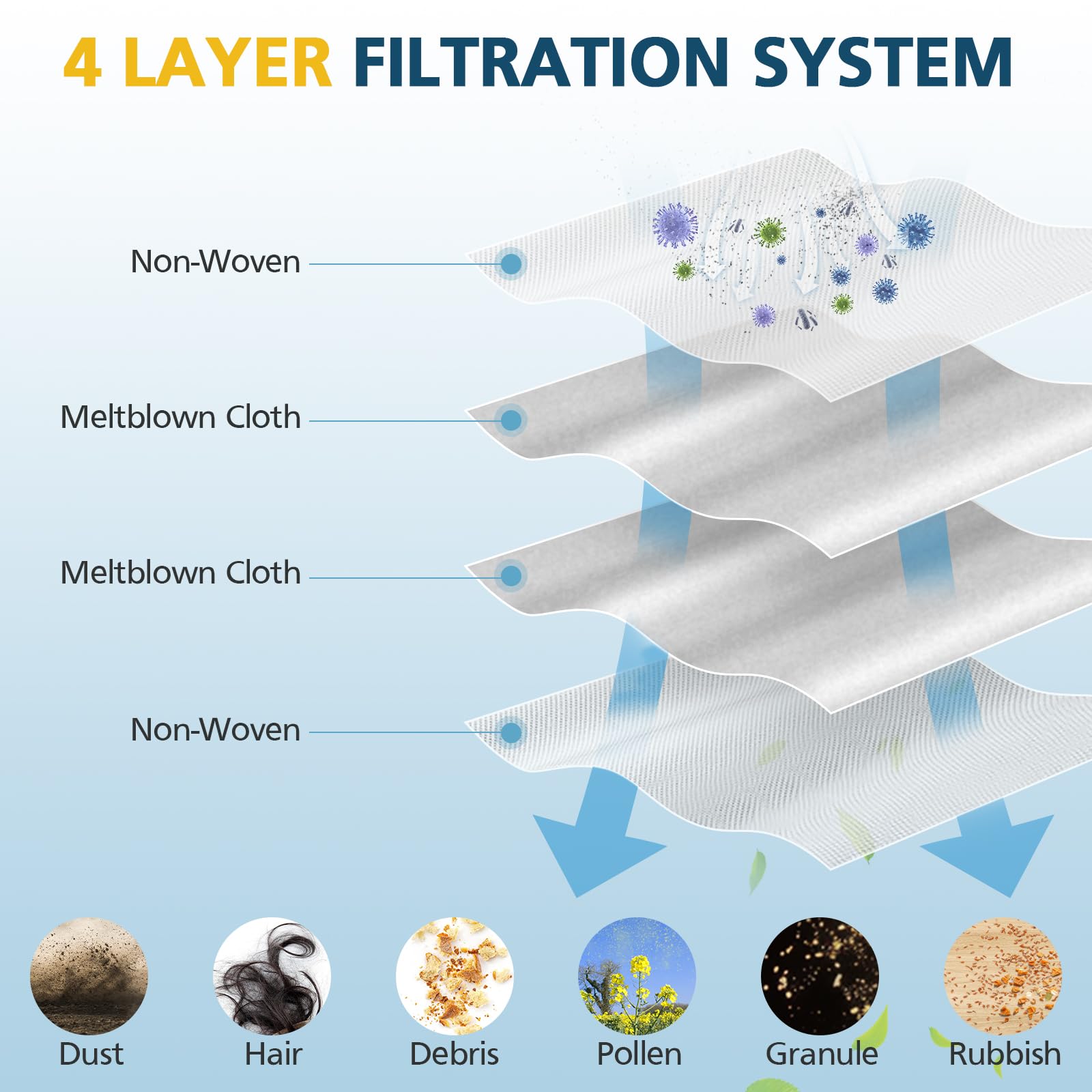 【HIGH-EFFICIENCY FILTRATION】: These Q5 Max+ dust bags are made of 2-layer superfine melt-blown fiber filter and 2-layer non-woven fabrics, which can work for 99.97% of dirt, detritus, and other particles down to 0.3 microns. Great for family with pet and child, easy to get a clean and cozy space for your family