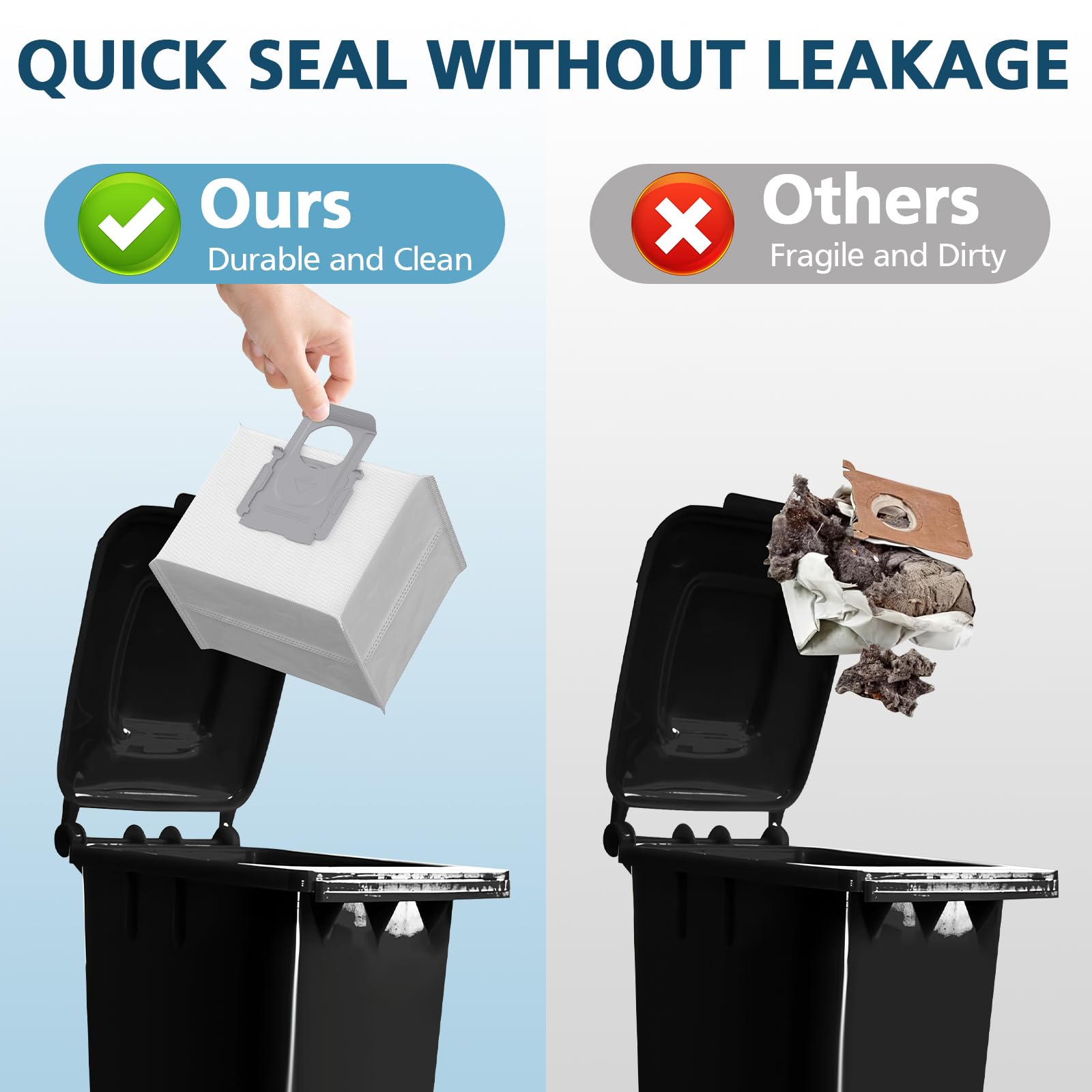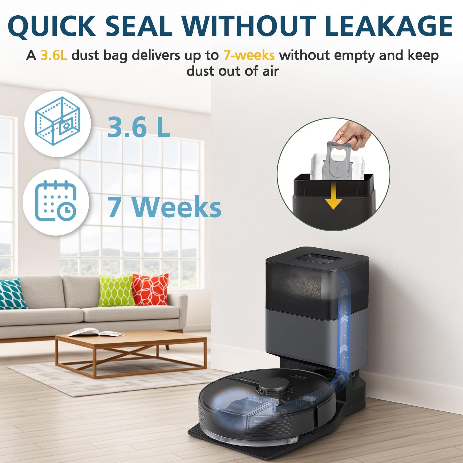 【ANTI-LEAK TECHNOLOGY】: The Q5 vacuum bag with a rubber seal has a strong sealing property in case the dust leakage, ensure all the dirt inside the dust bag is collected and never released back into the air. The rubber gasket is thick enough and can seal very well to the dock. Won't lead the dock to get full of dirt