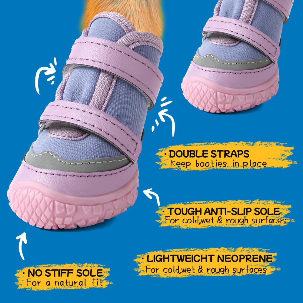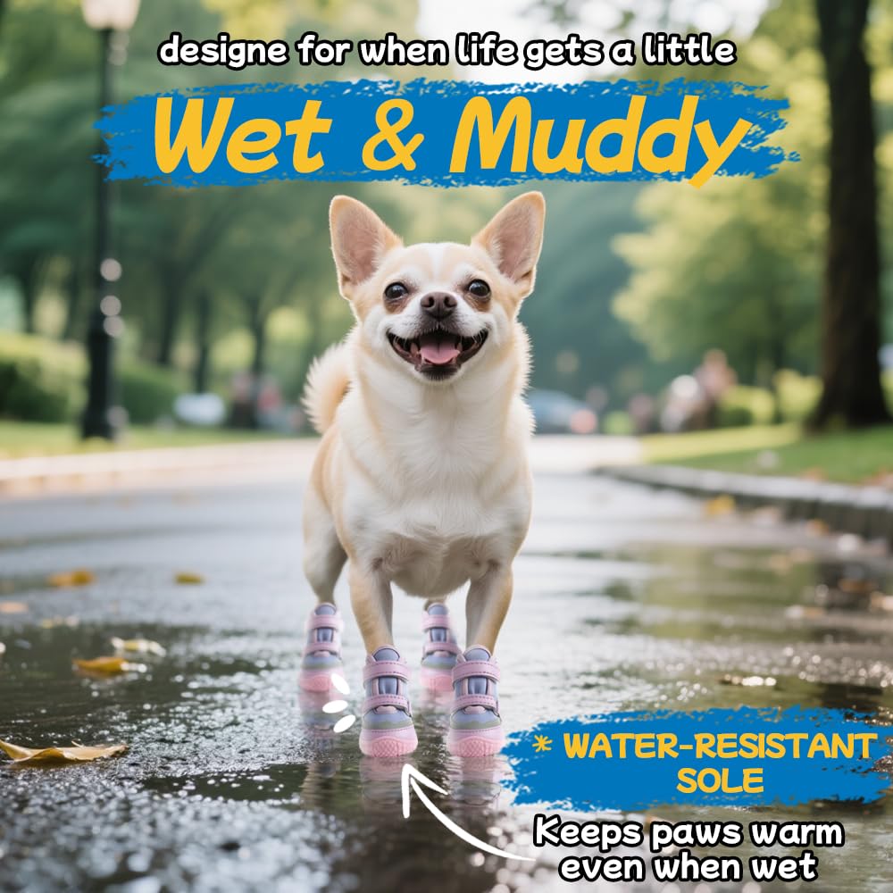 Dog Shoes for Small Dogs Boots, Waterproof Dog Booties Paw Protector for Outdoor Walking, Puppy Shoes with Reflective Strips Rugged Anti-Slip Sole for Hardwood Floors Hot Pavement Winter Snow 4PCS/Set