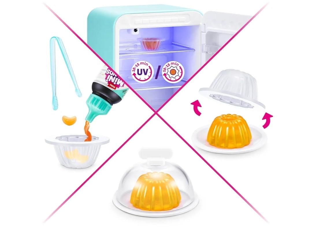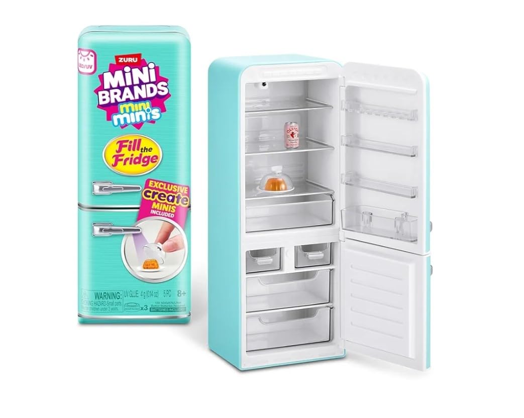 Ready to fill your mini fridge in style? Inspired by the viral trend of replenishing fridges, the Mini Brands Fill The Fridge playset lets you create your own adorable collection of mini fridges. Includes a mini fridge, exclusive miniatures, magnets and more, it's the ultimate kitchen set for collectors and miniature hobbyists! With incredible details, like a functional ultraviolet light, you may even be able to answer that old question: Does the light stay on when you close the door? Get ready to fill your mini fridge with even more details and the brands you love! Mini Brands Fill the Fridge Mini Minis are the perfect addition to your Mini Brands Fill the Fridge playset. With over 60 collectibles to discover, you'll find everything from your favorite snacks to classic kitchen must-haves — all in adorable mini formats! Each capsule contains a surprise miniature. Which one will you unbox? Discover, collect and assemble the miniature kitchen of your dreams today! Package includes one fridge and two S1 capsules.