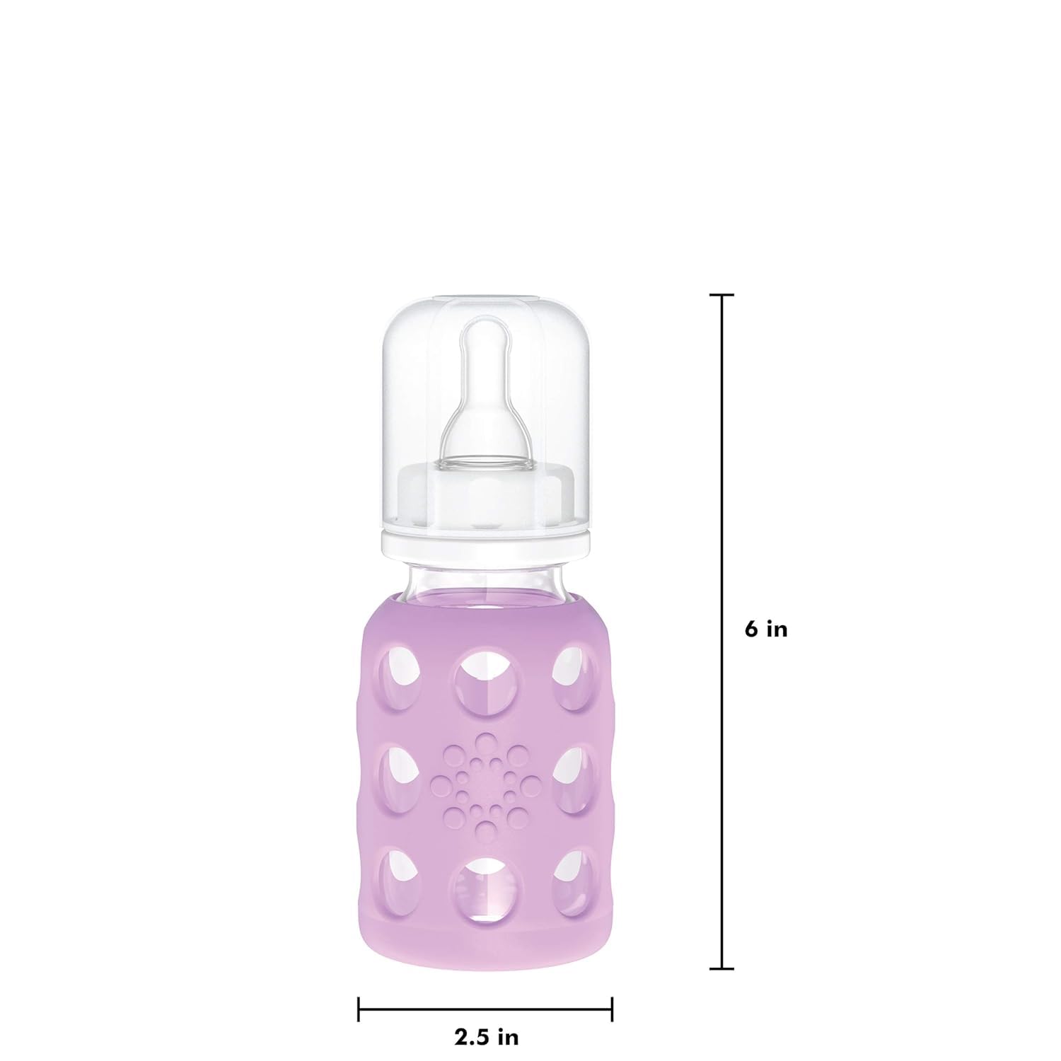 Our baby bottles are made of the highest quality, thermal shock resistant borosilicate glass. This allows our bottles to transition safely from freezer to boiling water. The silicone sleeves provide a good gripping surface for little hands and help protect against the occasional drop. Includes 4-ounce (120 ml) bottle with Stage 1 (0-3 mos) nipple. Care and Use -Before first use, place in dishwasher or in boiling water for 3 minutes. This is to ensure hygiene. Immediately after use, disassemble individual top components (e.g. nipple from top or valve from cap). All parts are dishwasher safe (top rack only). To wash by hand: wash separately in hot, soapy water and rinse thoroughly. Bottle and sleeve may be placed in the dishwasher or boiled without removal of the sleeve. If you wish to remove the sleeve, it comes off best in warm, soapy water. To allow venting and prevent nipple/valve collapse, do not over-tighten screw top