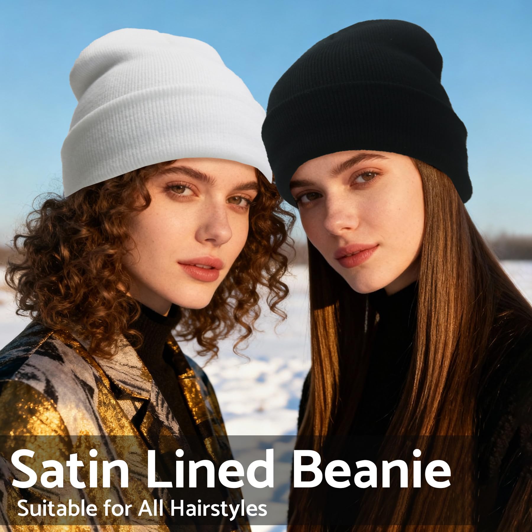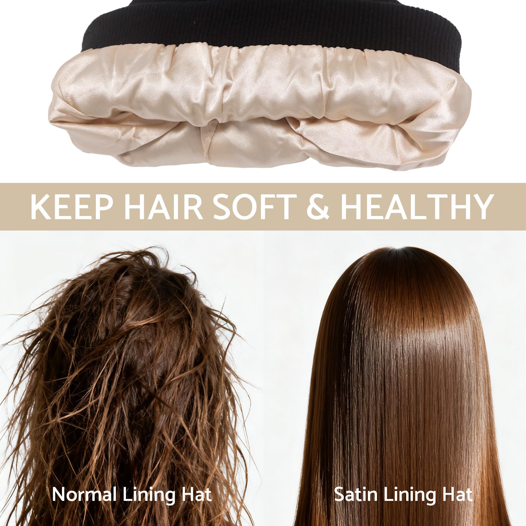 Warm Winter Hat: The satin lined beanie provides warmth in winter. You can pull down the cuff to cover your ears, effectively locking in heat to combat the cold. It pairs with any outfit for warmth and style anywhere
