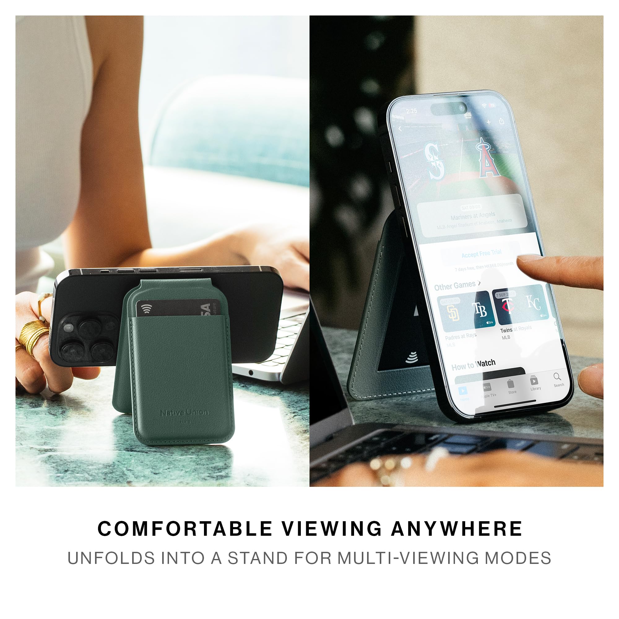 ADJUSTABLE STAND: Unfolds into a convenient phone stand for easy hands-free access in portrait or landscape anywhere you go
