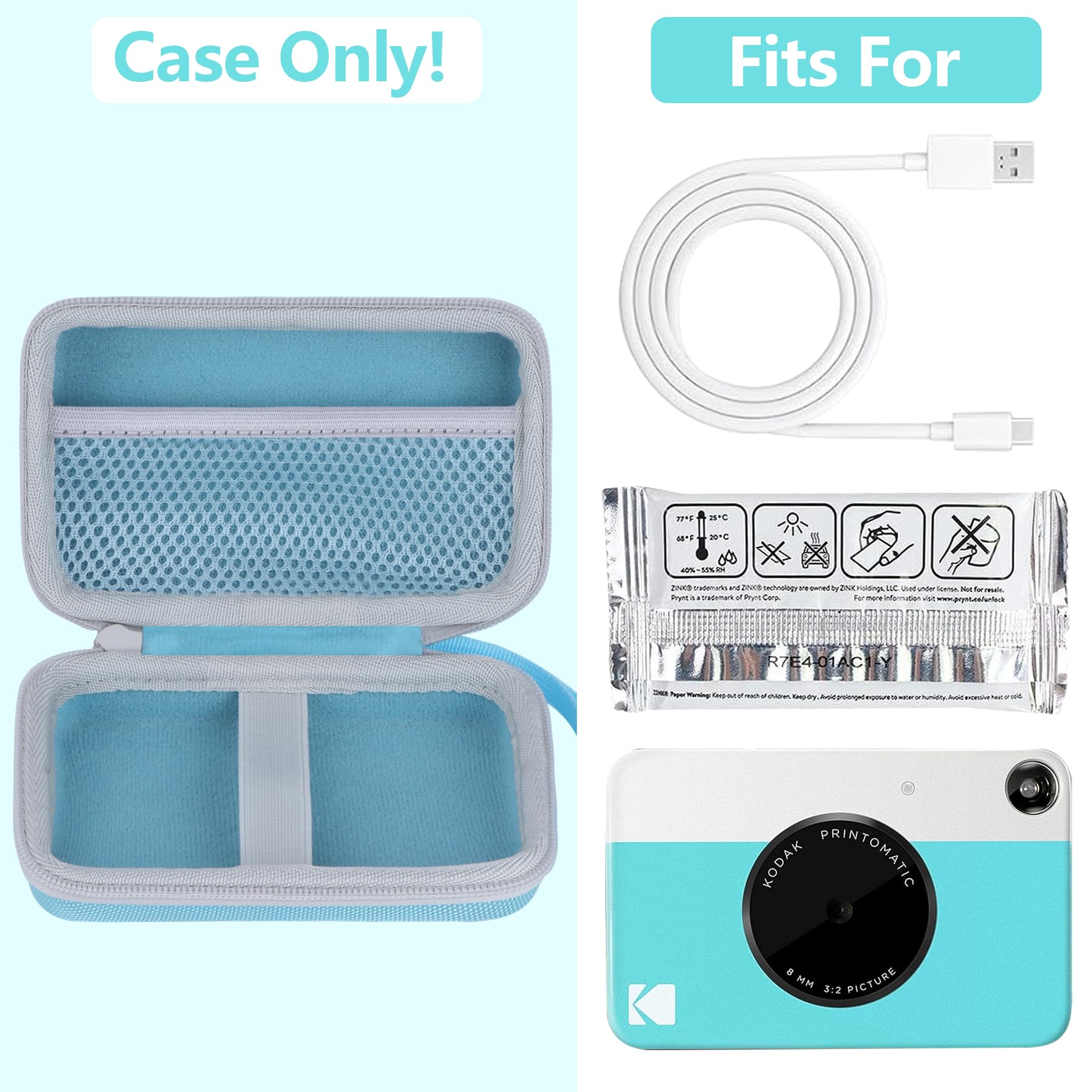Compatibility: This RIYADAone storage case is made for KODAK Printomatic Full Color instant print digital camera. This KODAK Printomatic instant print digital camera case offers secure protection for your KODAK Printomatic instant print camera. This case for Printomatic instant print camera keep your Printomatic camera in a good condition