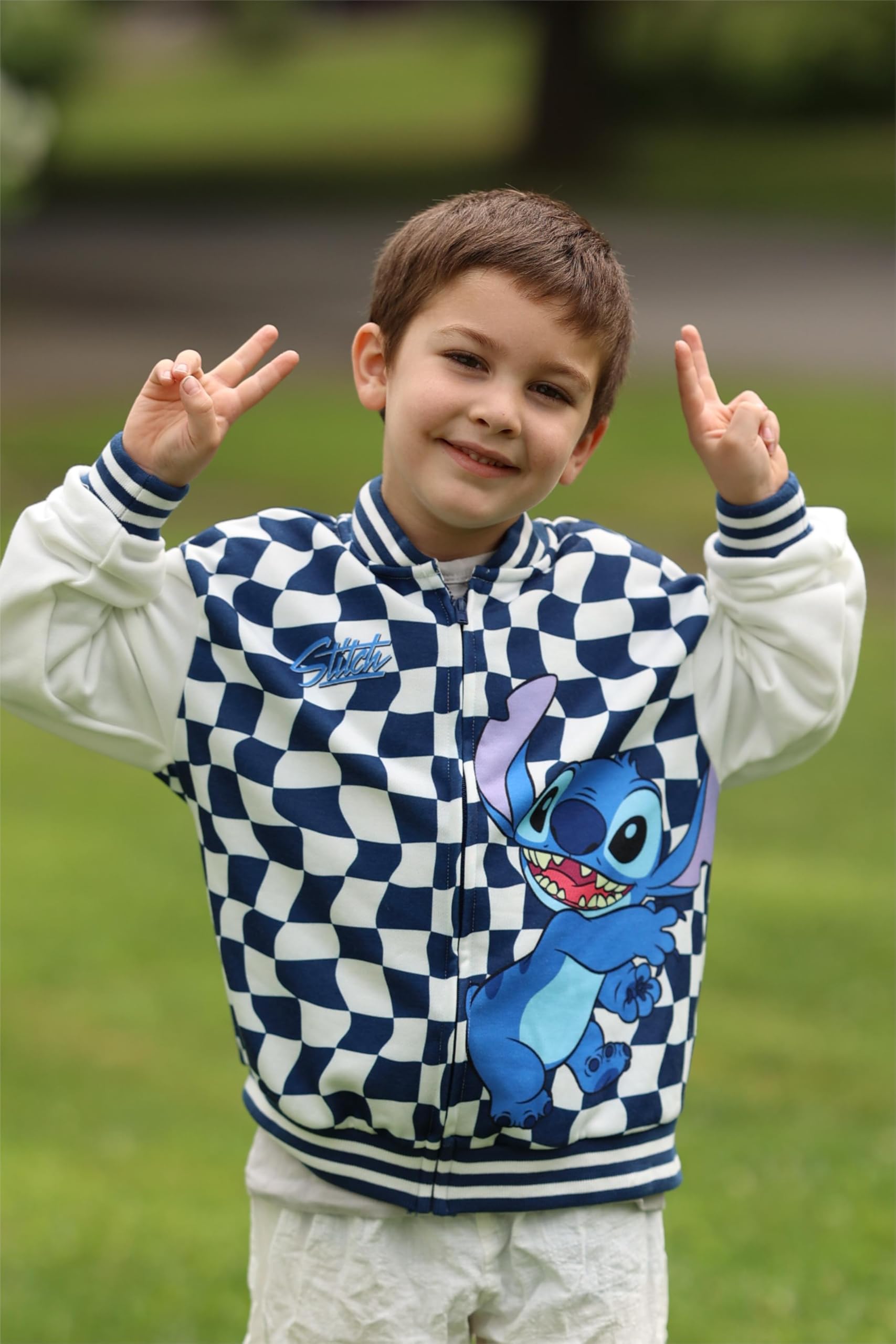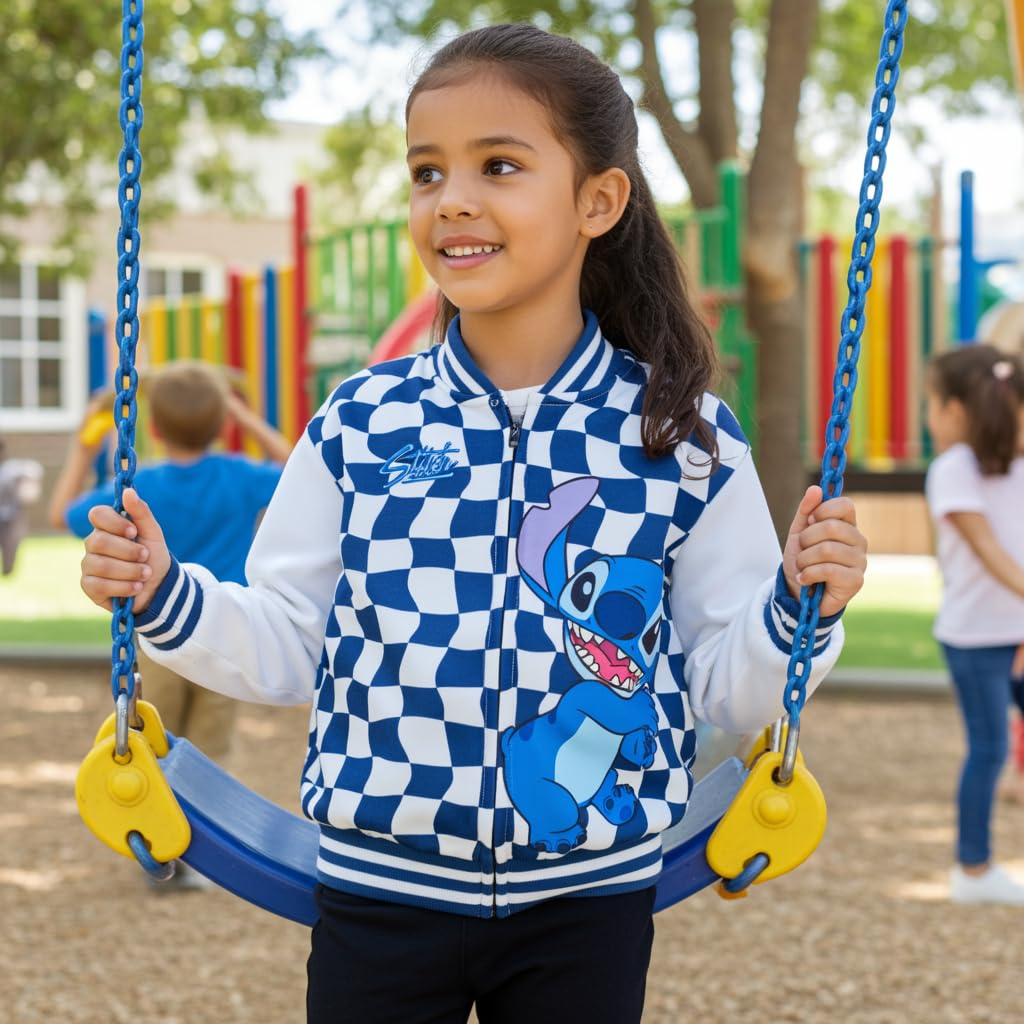 Charming & Fun Design: Let your little one embrace the spirit of Lilo & Stitch with this cool checkerboard-patterned jacket! Featuring Stitch in a playful pose, this bold blue and white jacket has ribbed cuffs and collar for a sporty, comfortable look. Perfect for kids aged 3-13, it’s great for casual outings, school, or any Lilo & Stitch fan event, offering both style and comfort