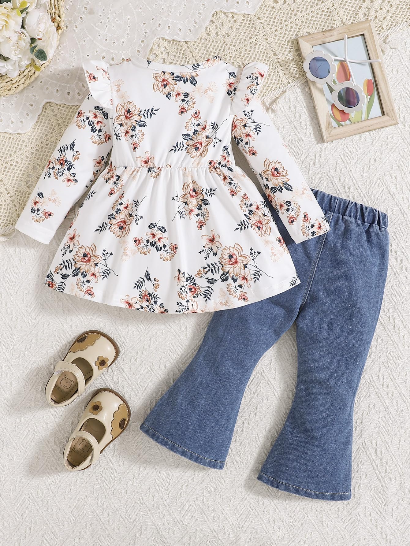Todderl Girl Clothes Adorable Design: Baby girl outfits is designed with a crew-neck+long sleeve ruffle striped+floral shirts+stylish solid color+annimal pant that will make little girls look so cute all day.