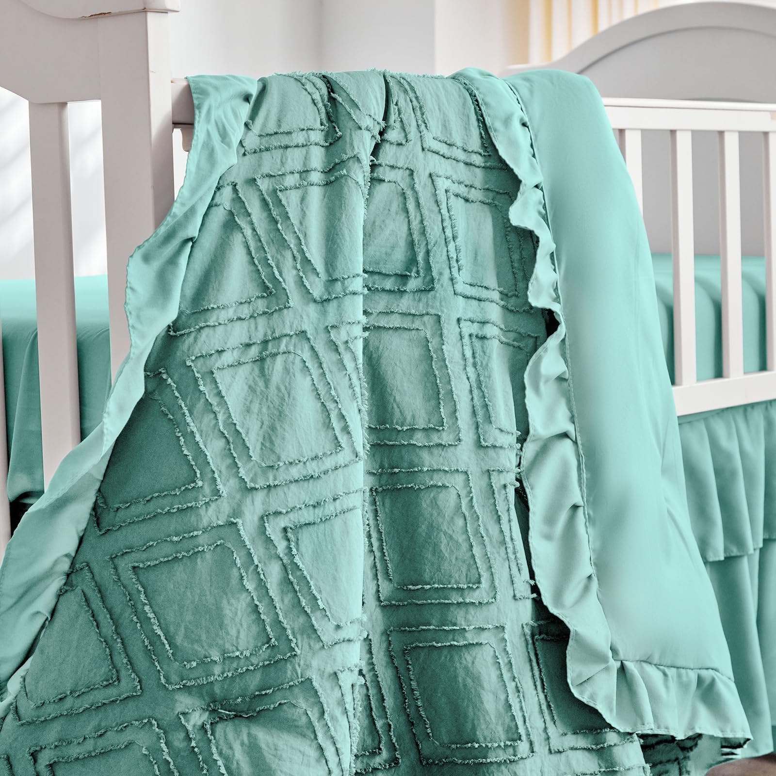 [ Design ] Tufted Shabby Chic boho Style with ruffle, Simple and sophisticated jacquard tufted embroidery design brings you the visual enjoyment of beauty. The comforter have 2 inches ruffle and make it very cute and luxury for boys or girls. The main style is solid color style. American country style crib bedding set. Try some simple color and offer you baby a nice sleep. Boho tufted style is super great for the coming spring