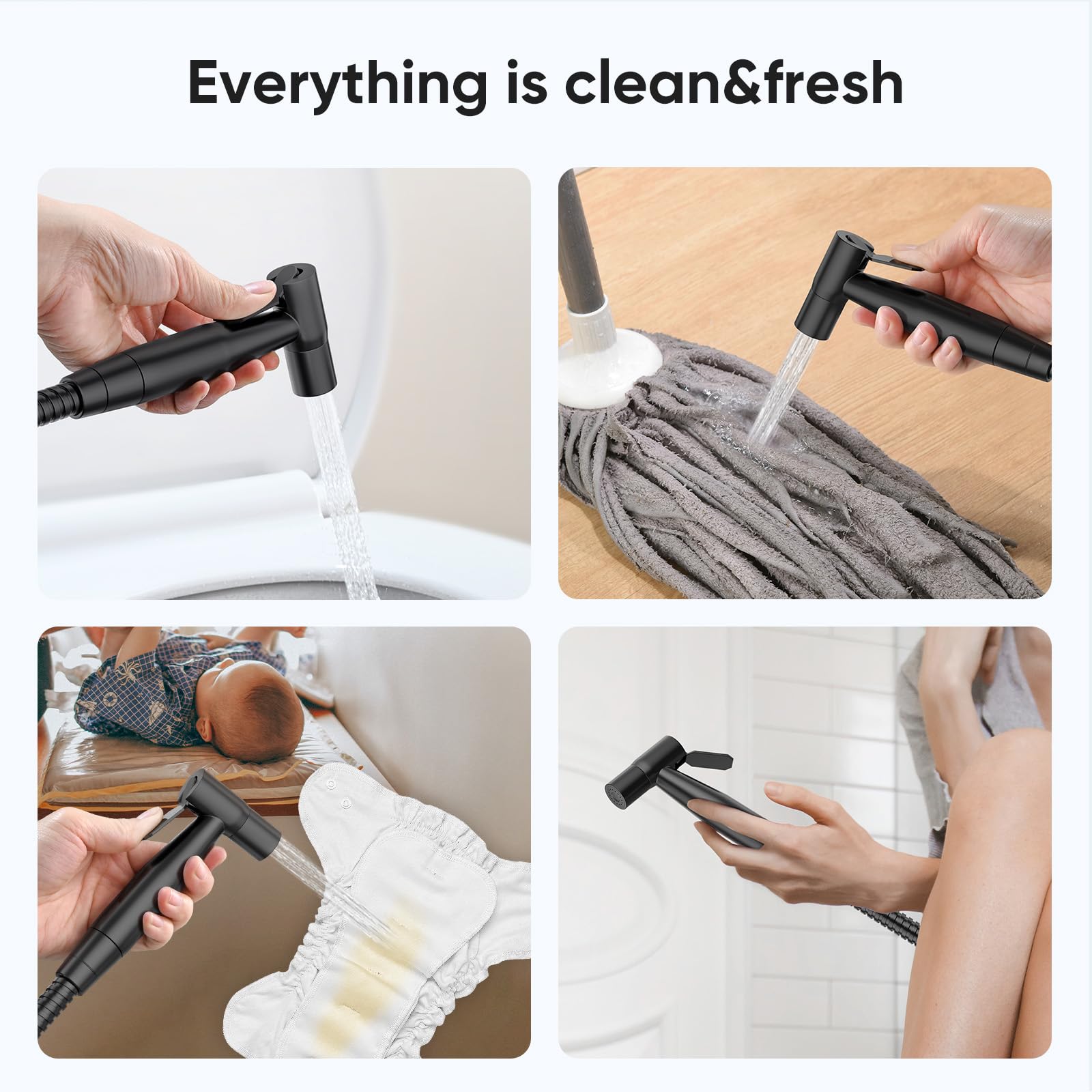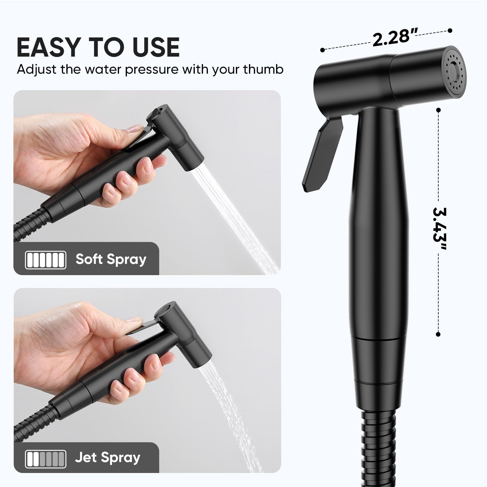 SAVING TOILET PAPER BUDGET: The black handheld bidet sprayer is the perfect choice for bottom cleaning, one-handle ergonomic design makes it easier for you to clean the front or back and is more hygienic and efficient than using toilet paper