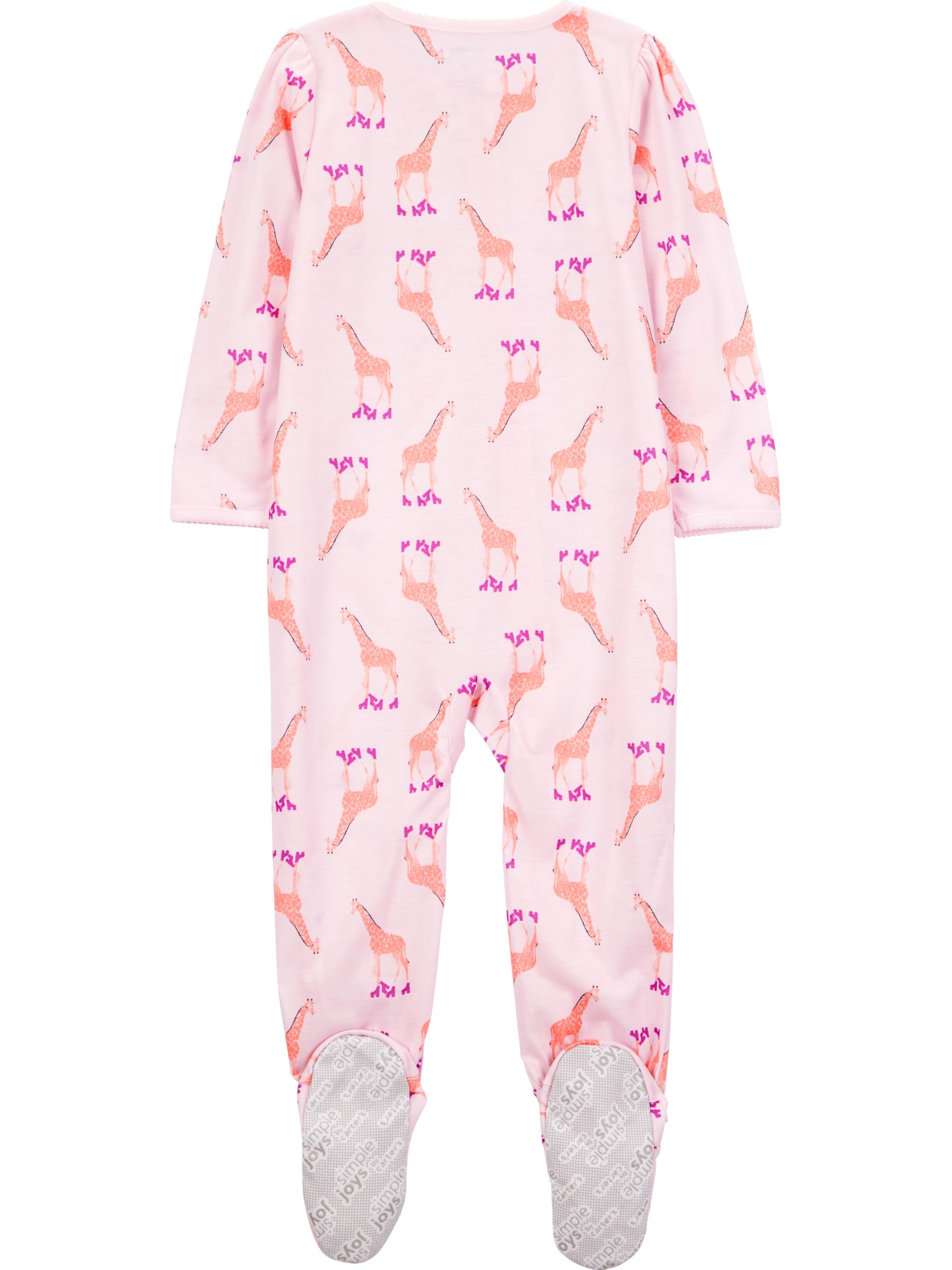 Description A three-pack of colorful long-sleeve footed bodysuits featuring playful prints and ankle-to-chin zippers for easy changes.