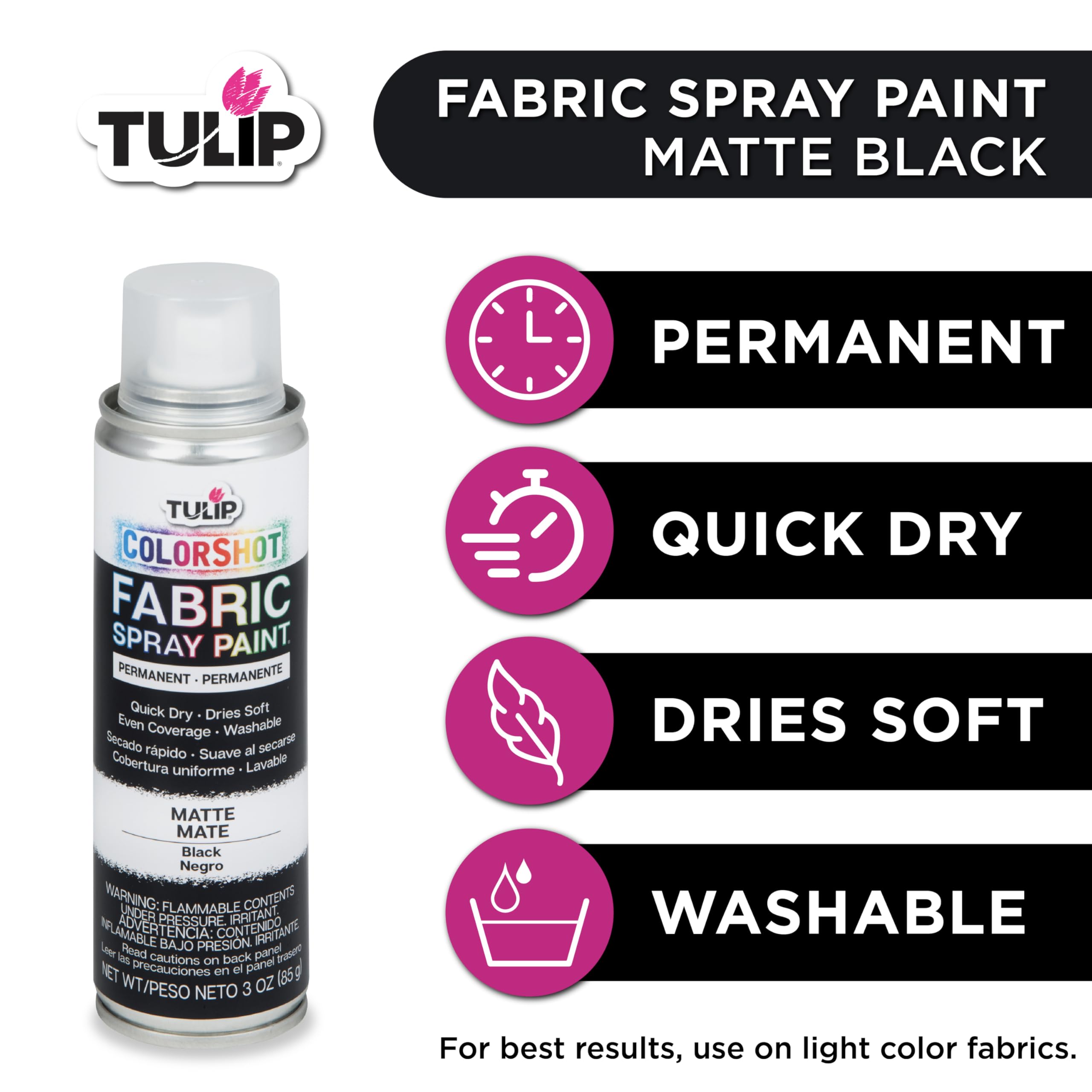 DRIES QUICKLY, SOFT TO THE TOUCH — Unlike stiff fabric paints that crack or flake, ColorShot dries fast and stays flexible, leaving fabric feeling natural. Works best on light-colored fabrics. 3 oz aerosol spray can.