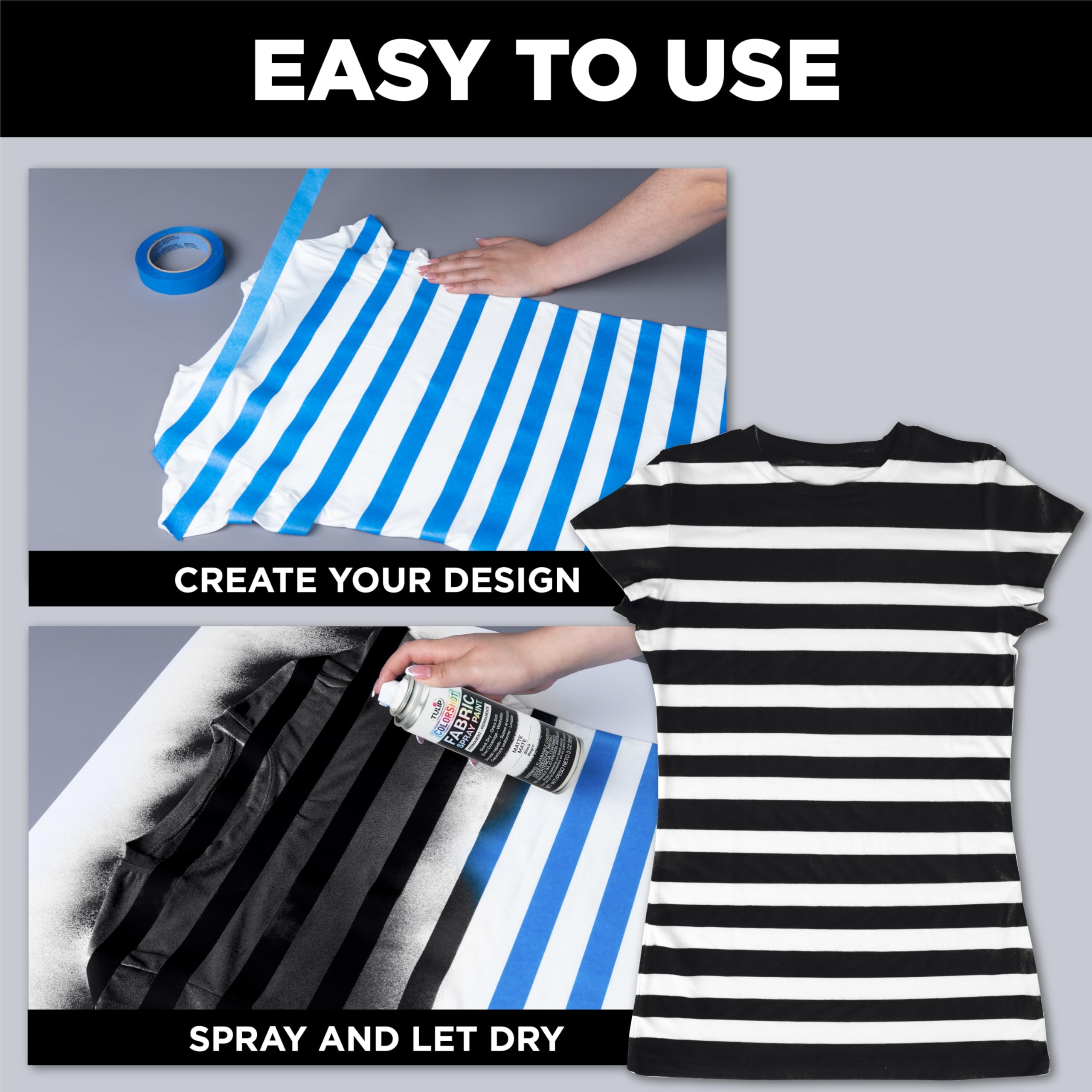 WORKS ON NATURAL & SYNTHETIC FABRICS — This fabric spray paint bonds to cotton, polyester, canvas, denim, and more. Perfect for allover color, stenciled patterns, cut-out designs, and creative fabric paint projects of all kinds.