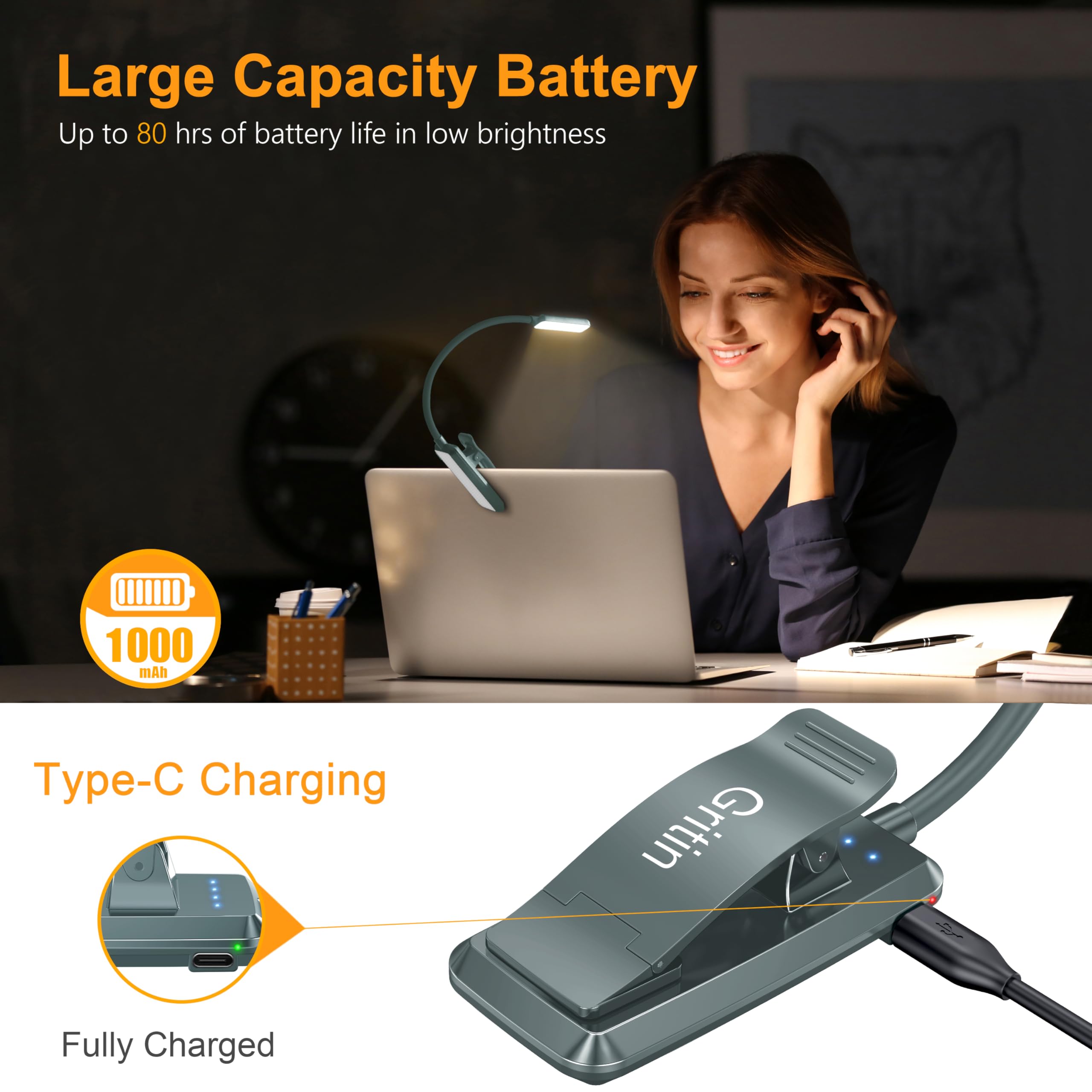 360° Flexible Neck & Sturdy Clip: 360° bendable goose neck can be rotated to any angle you want. Anti-skid clip design makes it firmly clamp on an e-reader, books, shelf, etc