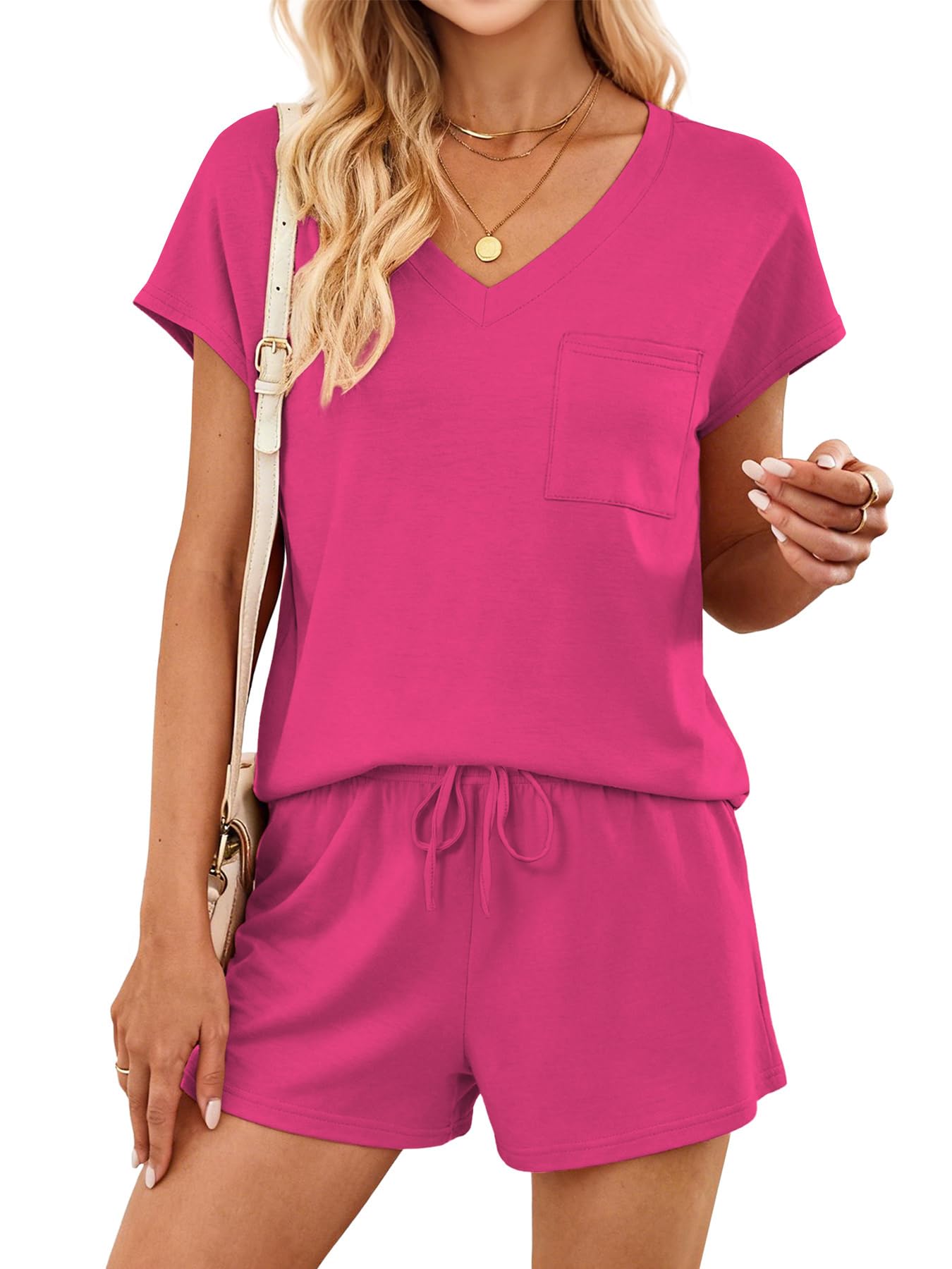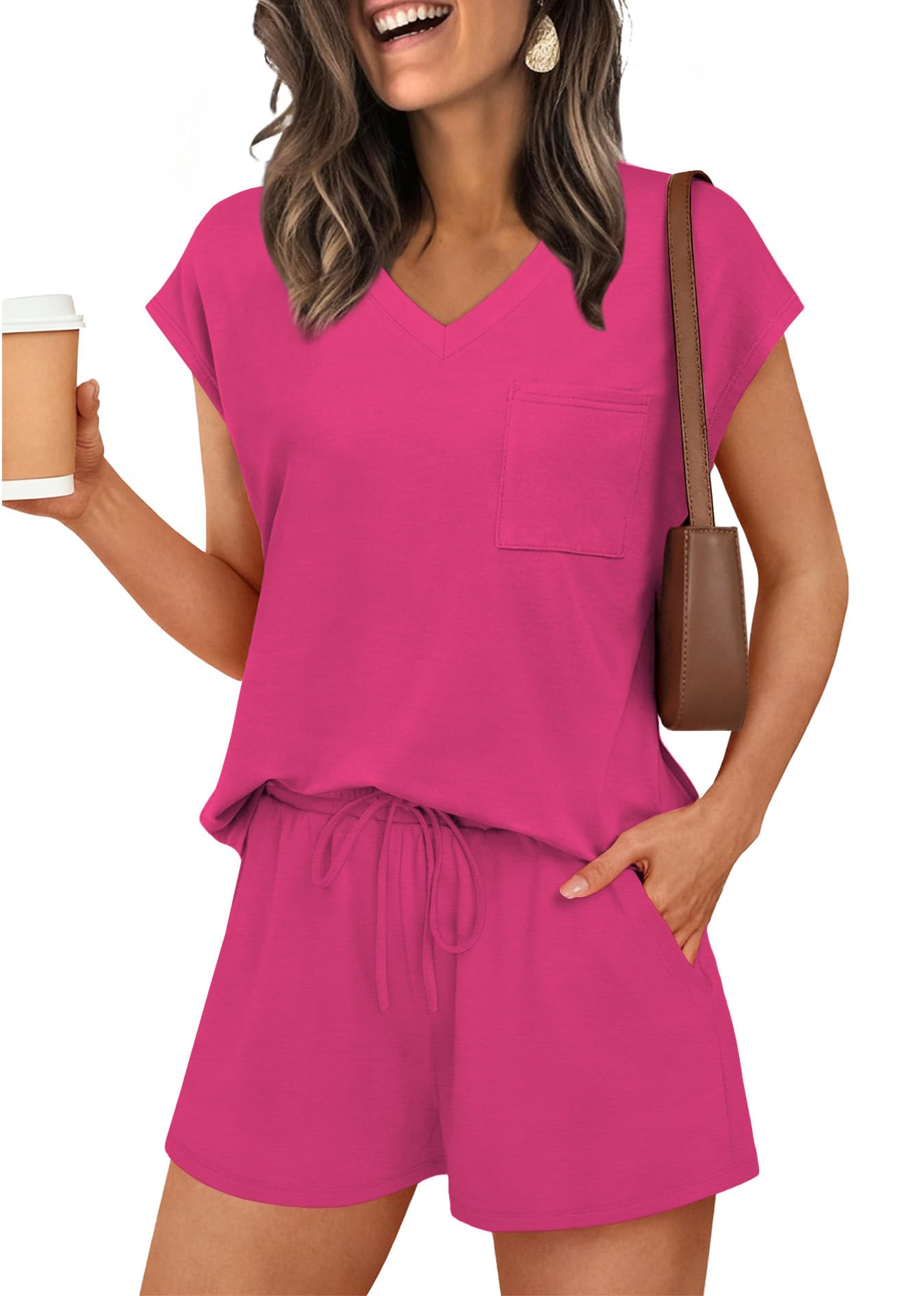 Design: Side-pocket shorts with relaxed fit & adjustable drawstring offer comfort and convenience; the trendy V-neck cap-sleeve top also works as a chic summer piece