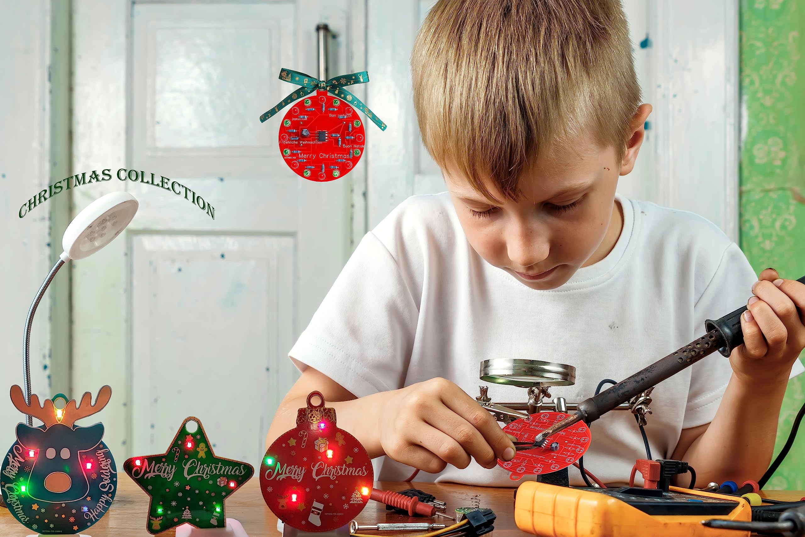 ❤ The LED Christmas Tree Decoration Soldering Kit is a basic soldering kit designed to help teach the basics of through hole soldering and circuit design.
