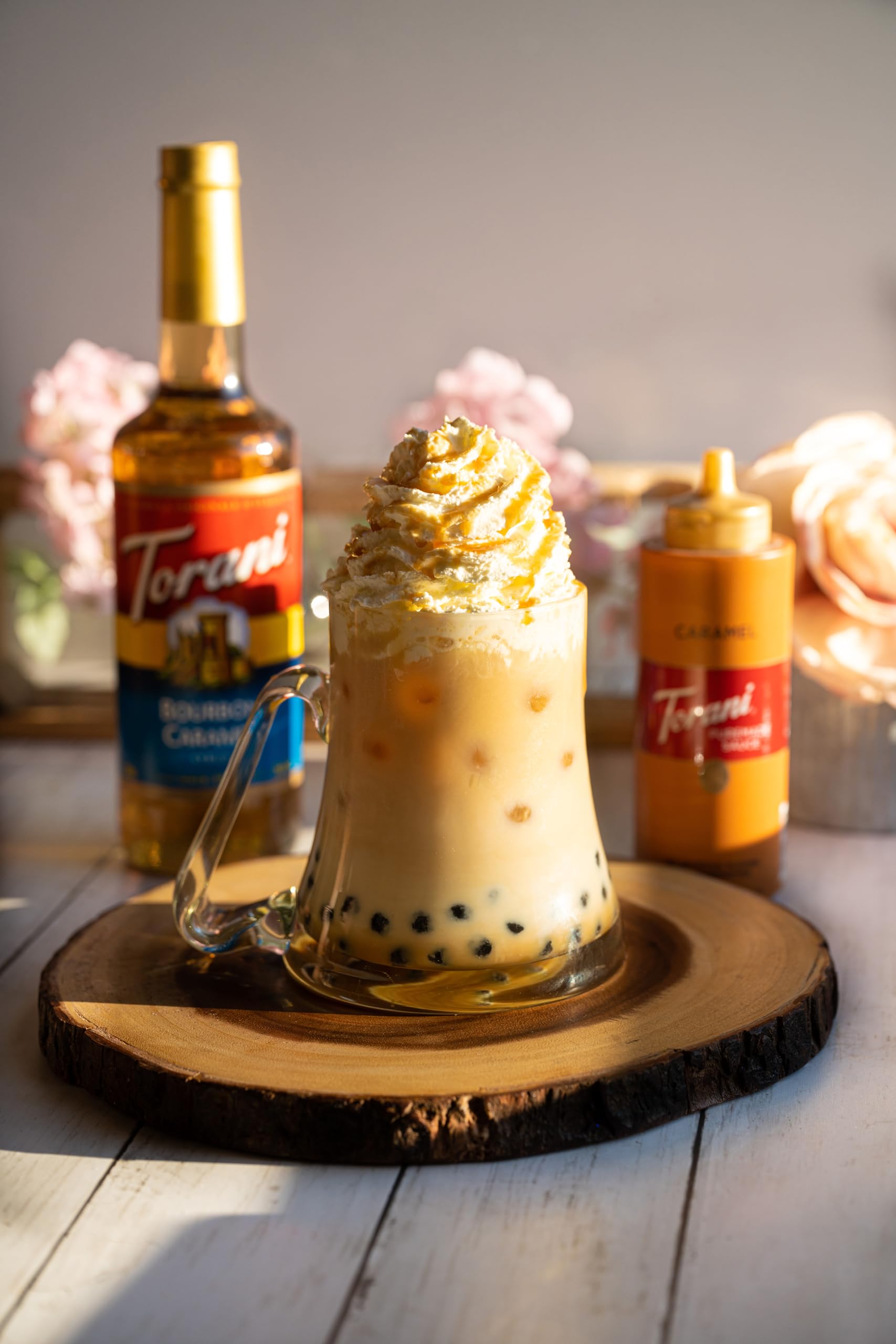 The flavors of a classic America spirit and rich, buttery caramel have been melded to create Torani’s latest vintage: Bourbon Caramel Syrup. A nod to Torani’s post prohibition era, this flavor is a modern twist on a timeless favorite. Ingredients PURE CANE SUGAR, WATER, NATURAL FLAVORS, CITRIC ACID, POTASSIUM SORBATE (TO PRESERVE FRESHNESS), SODIUM BENZOATE (TO PRESERVE FRESHNESS), CARAMEL COLOR The nutrition information contained here is based on our current data. Because data may change from time to time, this information may not always be identical to the nutritional label information of products on shelf or purchased online.