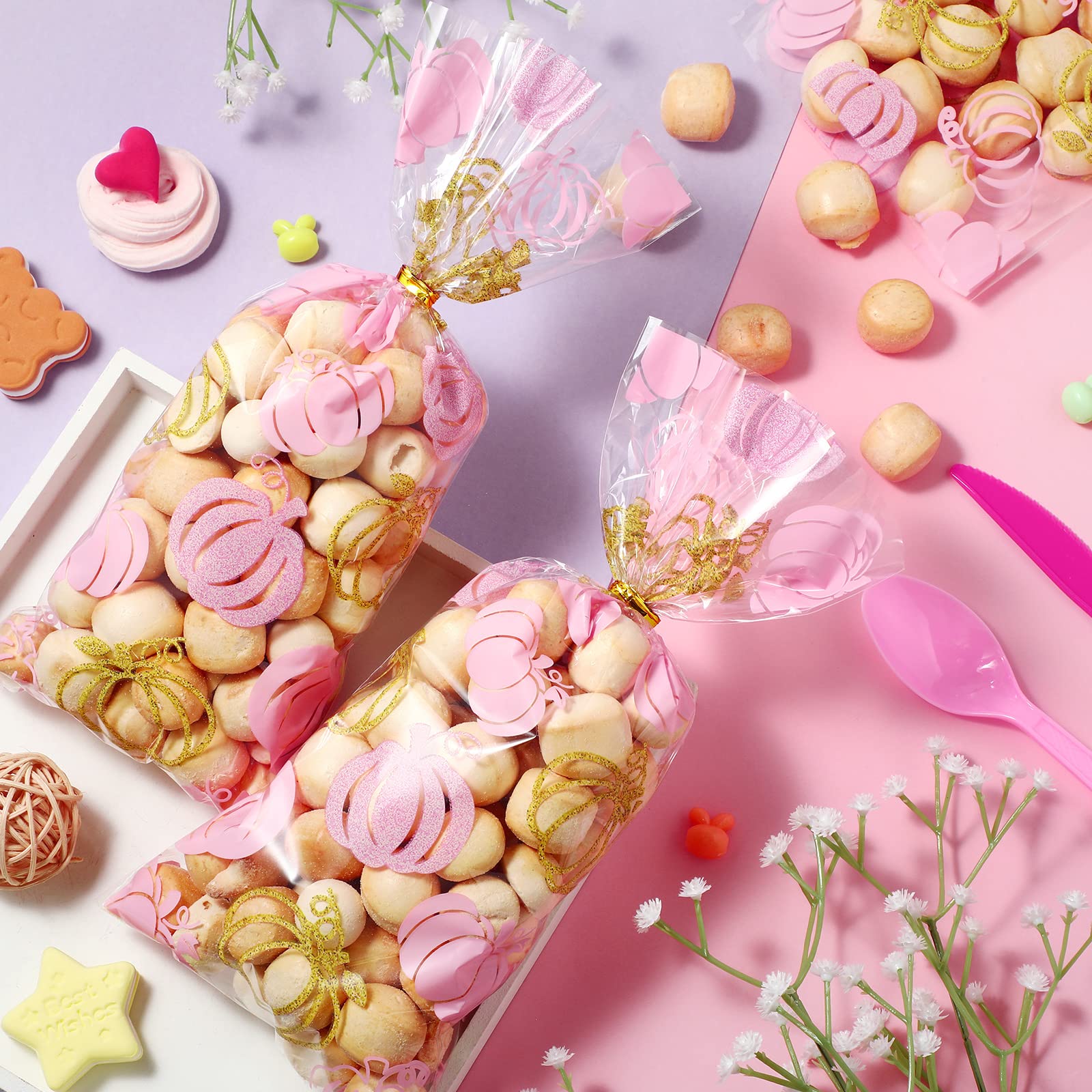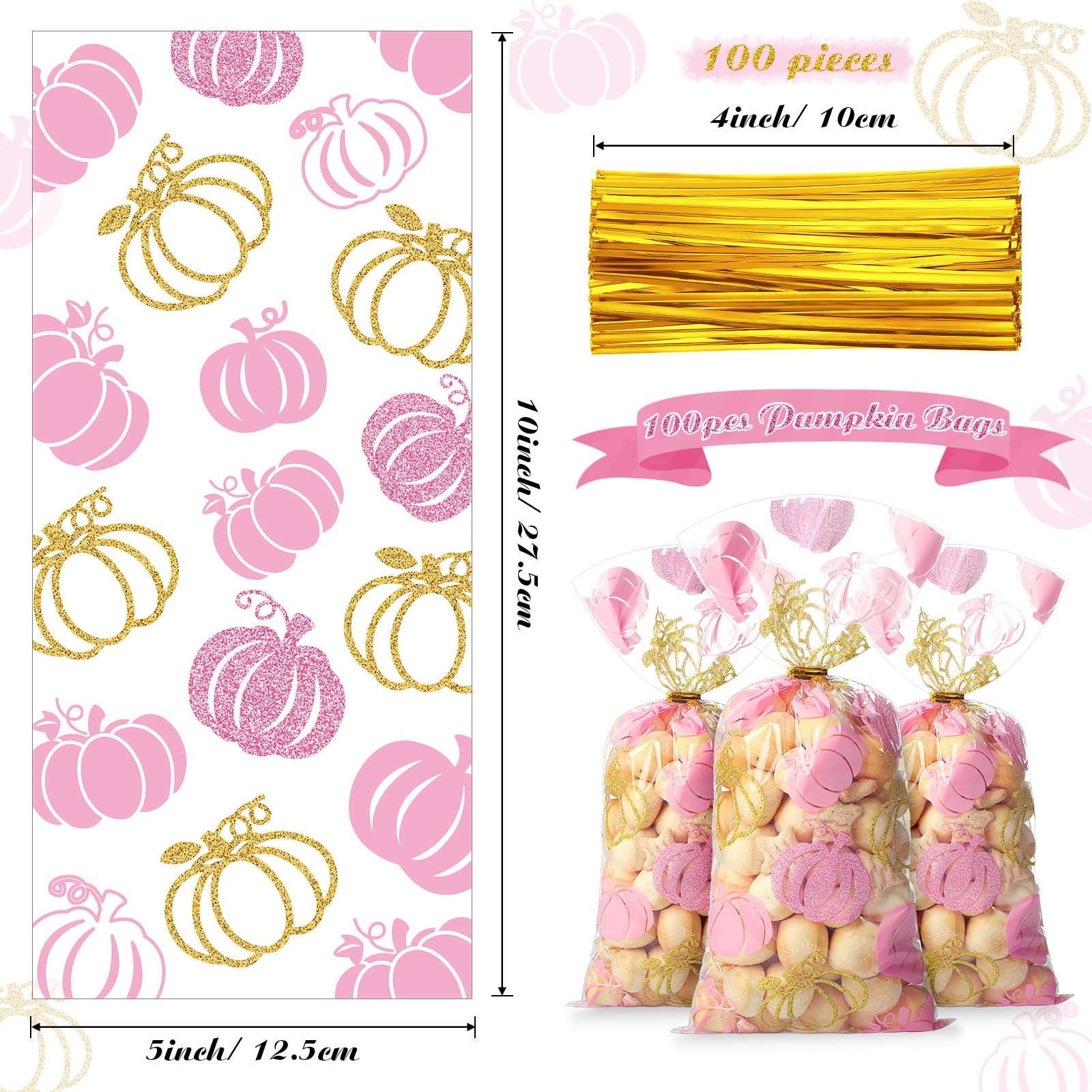 Autumn Theme: the autumn plastic gift bags are designed with fall elements, printed with gold and pink pumpkin in a delicate color combination; Full of autumn flavor to make your little pumpkin party, Thanksgiving party more colorful and impressive