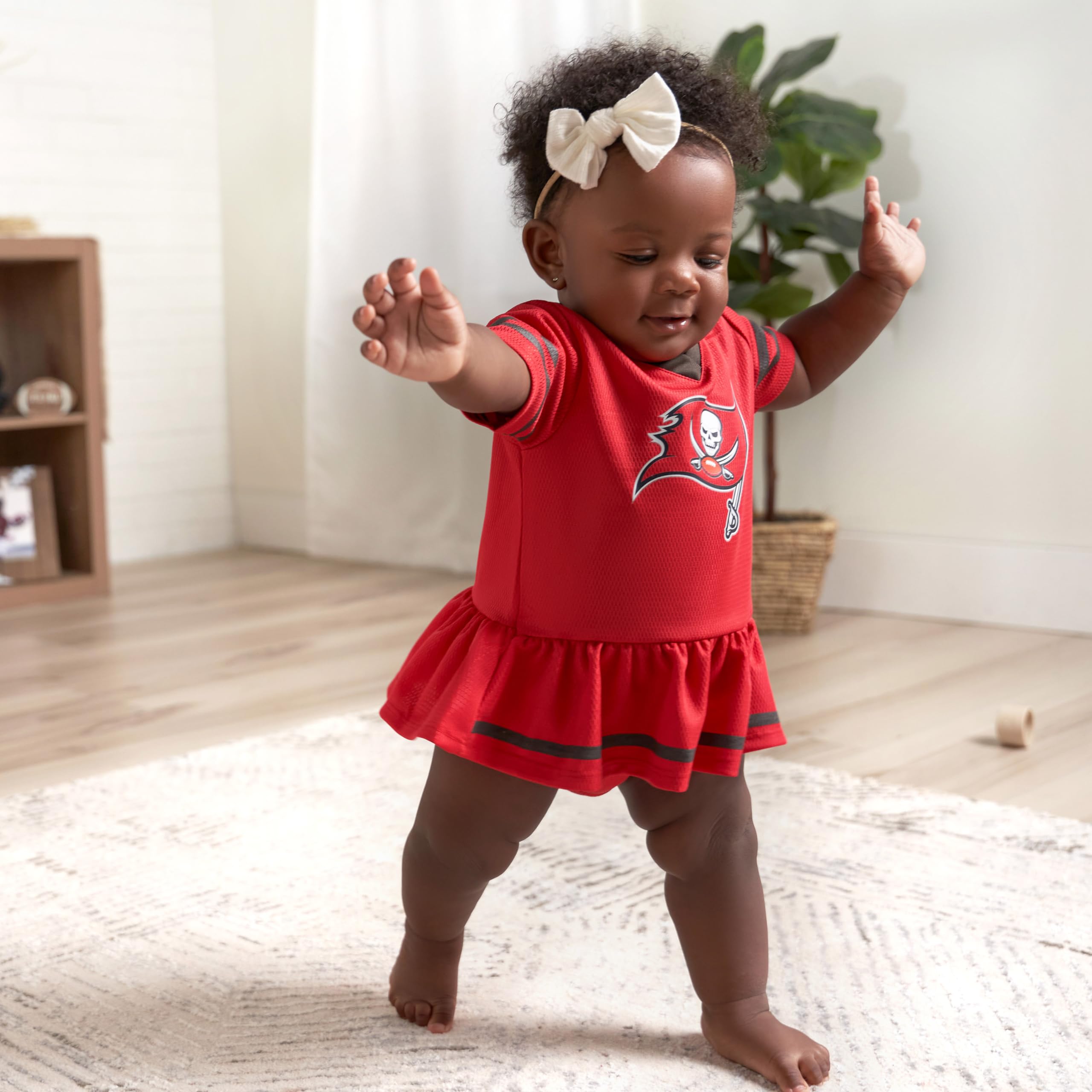Description Don't leave any room for guessing which team your little girl pulls for on game day with this baby girls' dress and matching panty set! The 100% poly dazzle mesh and rib fabrics keep her comfortable on all of her adventures. The logo is proudly displayed on the front of the dress using big, bold screenprint artwork. Matching team colors help you create a look that's perfect for game day or any day you want to show your team pride! Just toss this outfit into the washer and dryer with the rest of the easy care items for quick and simple cleaning!