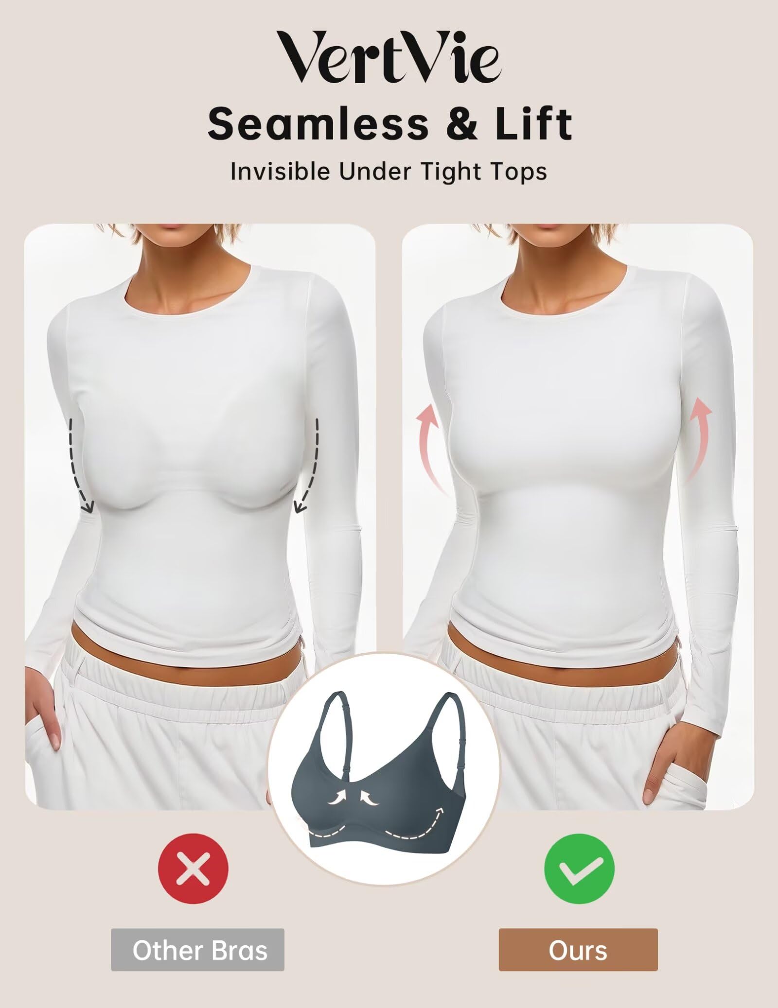 【Seamless Sports Bra】 The bras for women no underwire provide full coverage, support and lift. The sexy V-neck design enhances your bust line. The bra pads are removable, so you can take them out as needed. This everyday T-shirt bra is lightweight, invisible, and non-see-through, hugging your chest perfectly to provide a smooth look under clothing