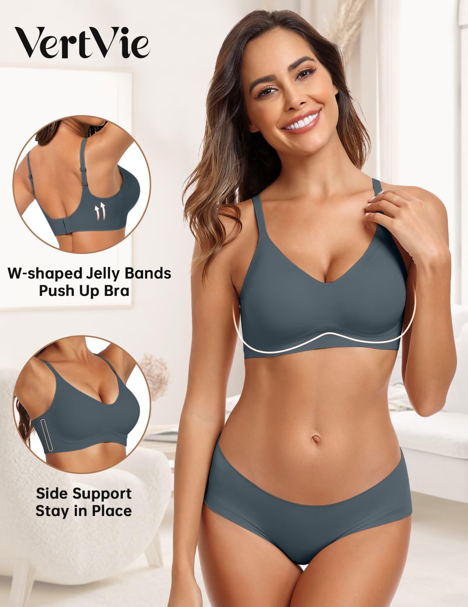 【Jelly Wireless Push Up Bras】 Our womens bras feature a W-shaped 'Jelly Bands' and 3D molded cups for double support. These wireless bras offer full support and a perfect fit for most body shapes, from small to plus size, and cup sizes A to DD. The push-up pad creates a naturally round and full shape for younger women and provides ultimate comfort and support for older women. Designed to boost confidence, our bra helps women look effortlessly elegant