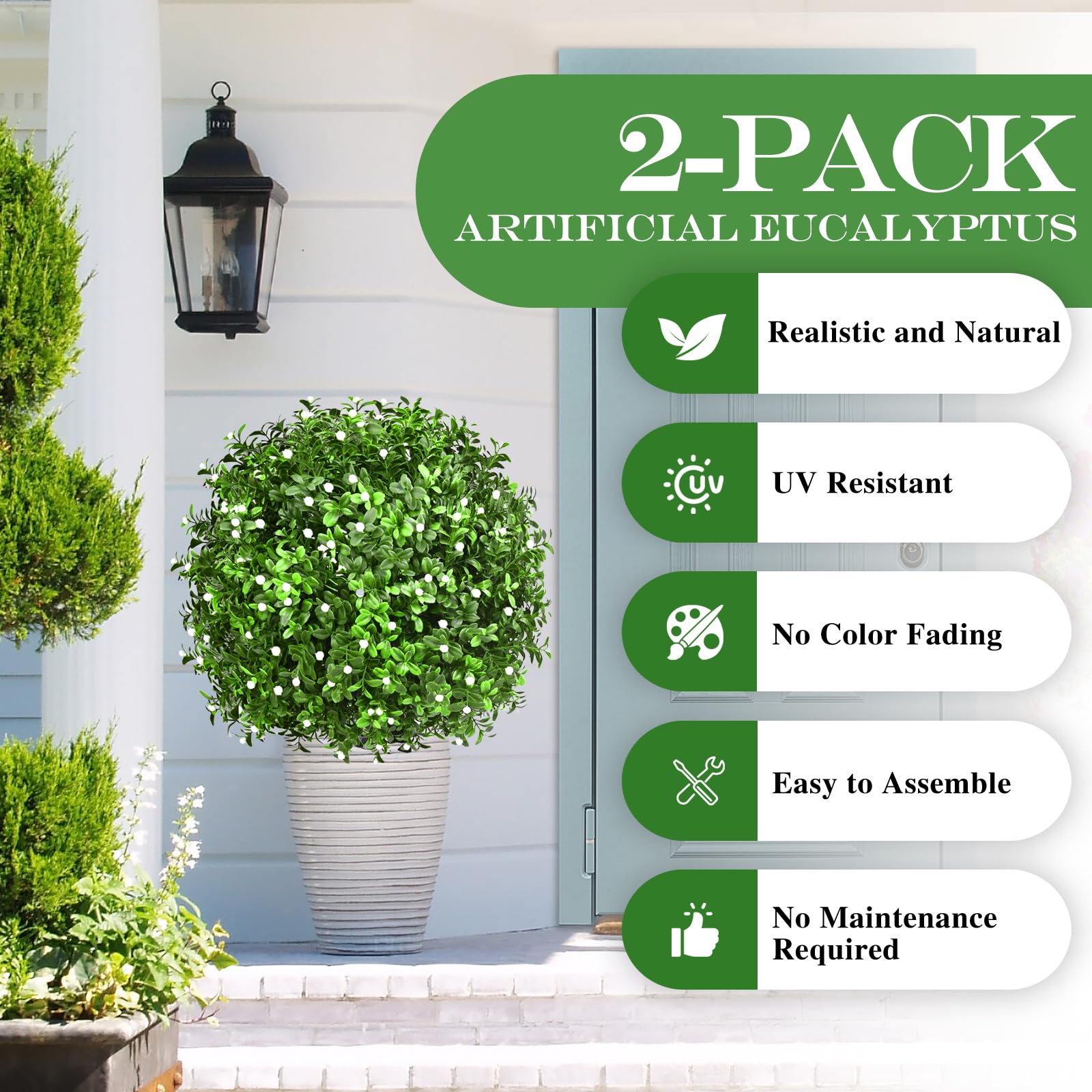 【Premium Weatherproof Materials – Fade & UV Resistant】Made from 100% high-quality new PE plastic, these artificial plants are UV-protected, fade-resistant, and built to withstand rain, sun, wind, and snow. No discoloration, cracking, or wilting—just long-lasting greenery in every season.