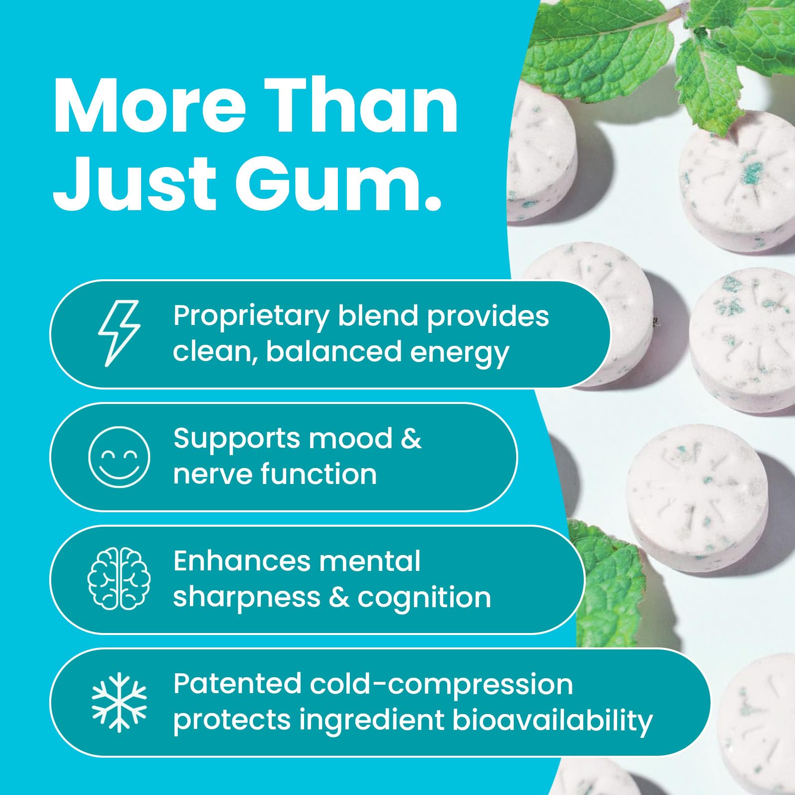 Fast-Acting Nootropic - Our energy supplements deliver a balanced boost of energy and clarity with a blend of natural caffeine, L-theanine, and vitamin b6 & b12. Your go-to chewing gum for work, exercise, and daily focus!
